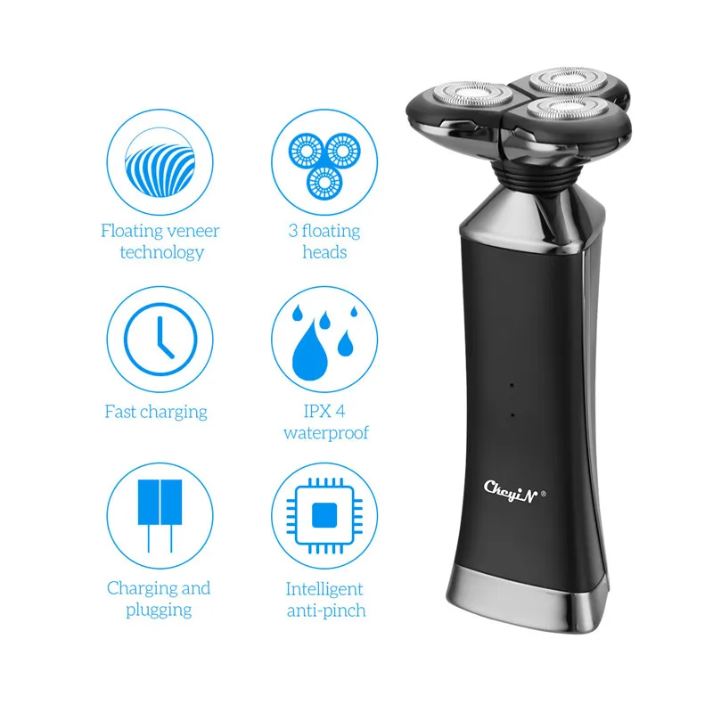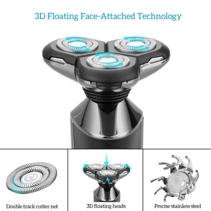 3.3D роторная электробритва, идеально подстраивается под контуры лица, шеи и даже челюсти для более комфортного и близкого бритья, минимизируя давление и раздражение, обеспечивает вам более комфортное, гладкое и близкое бритье.
