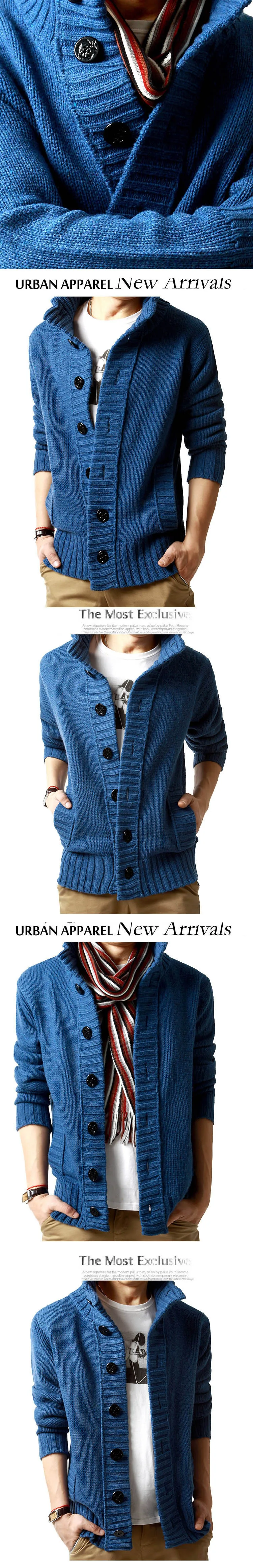 Vetement Homme 2018 Корейский мужской толстый зимний свитер, Мужской Повседневный свитер, мужская вязаная куртка на пуговицах, мужской однотонный кардиган