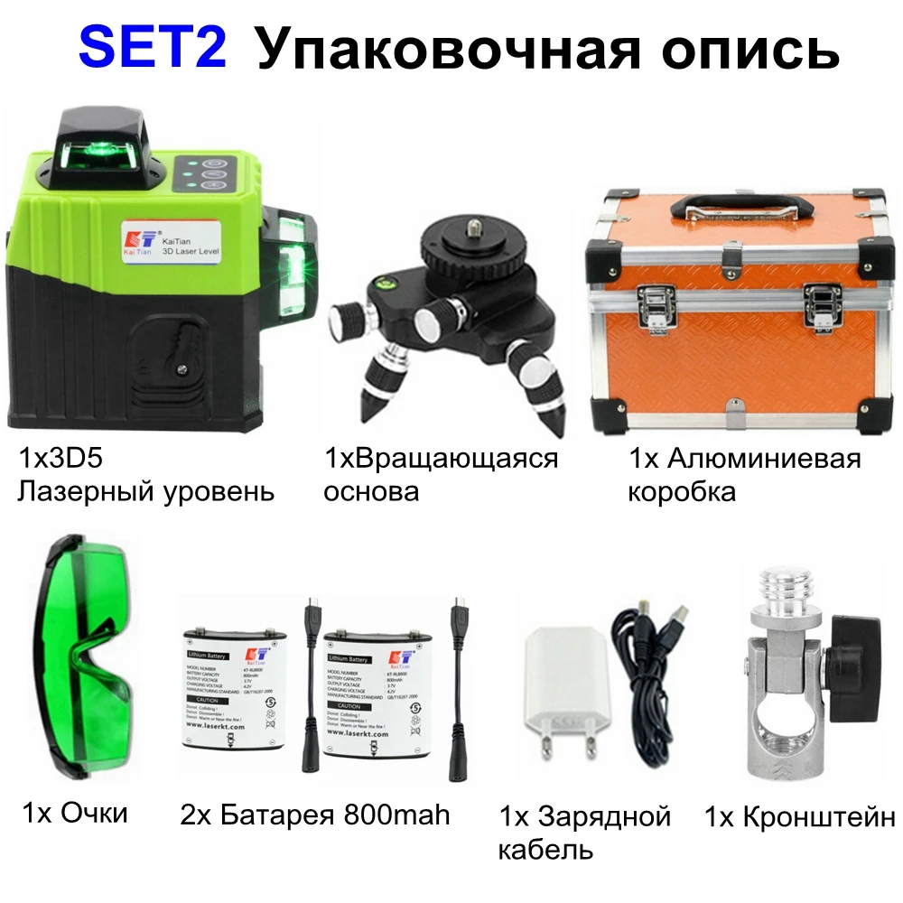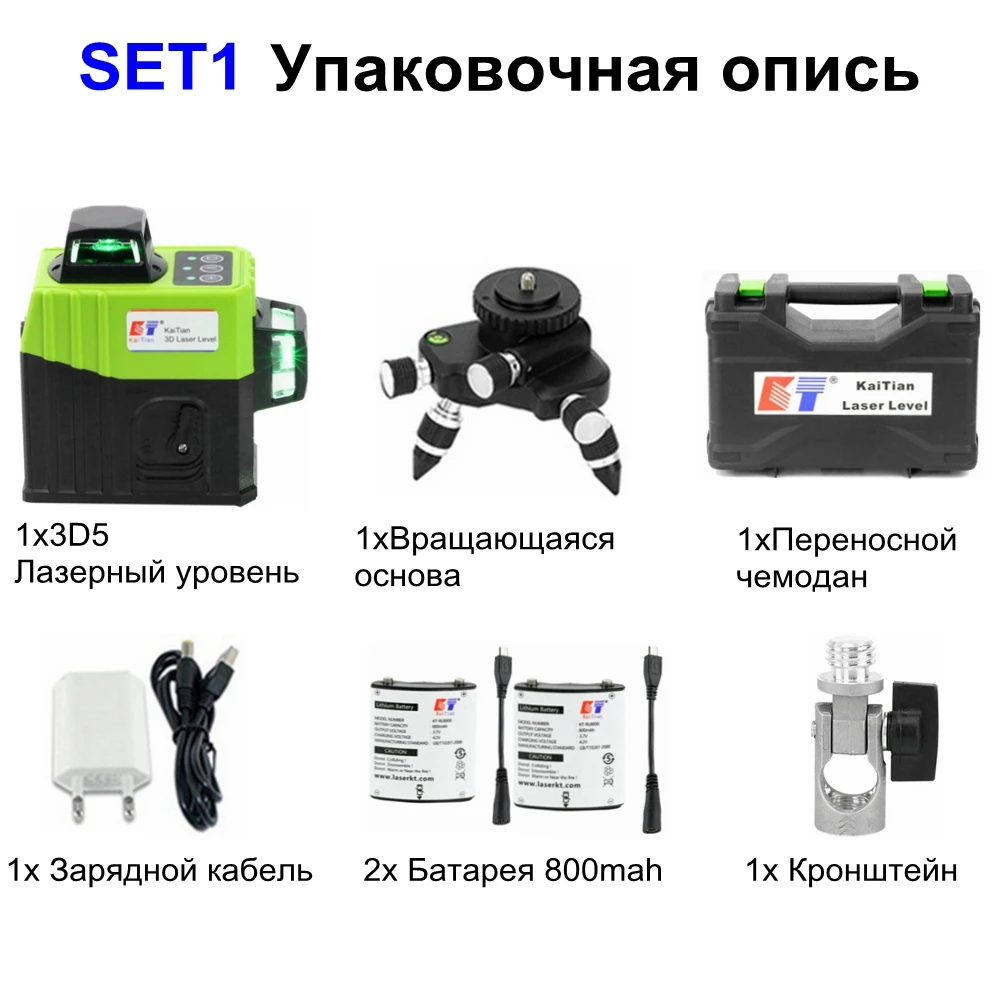 KaiTian 3D лазерный уровень используется AA и литиевая батарея и адаптер переменного тока 12 линий самонивелирующиеся 360 Горизонтальные и вертикальные зеленые лазеры Livella