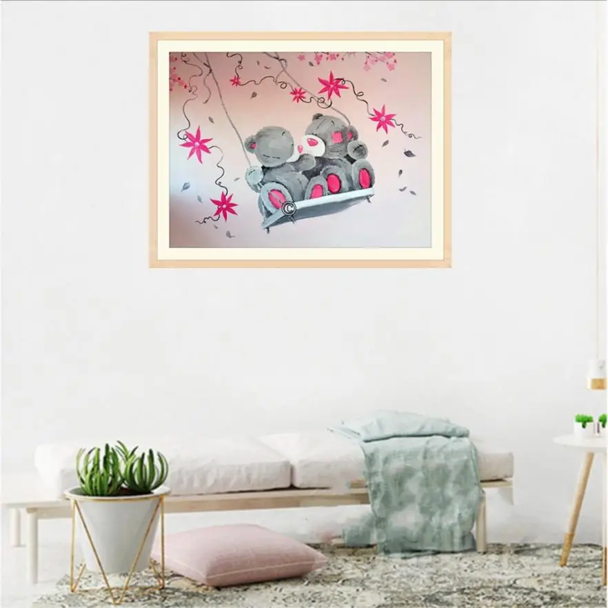 5D DIY Алмазная Картина Вышивка крестом животное медведь кукла рукоделие картины горный хрусталь мозаика картина круглая Алмазная вышивка