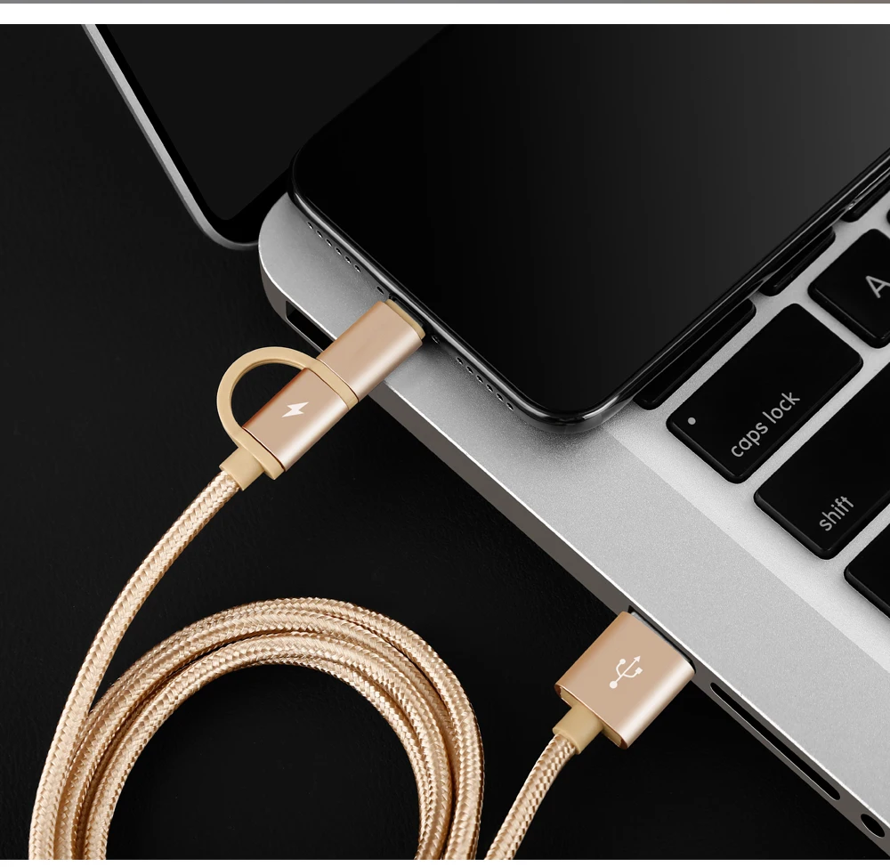 2 в 1 USB кабель для IPhone XS Max X 8 7 6 S mi cro USB 3.1A кабель для быстрой зарядки для Xiaomi mi 4 Red mi 4 X huawei P20 Lite