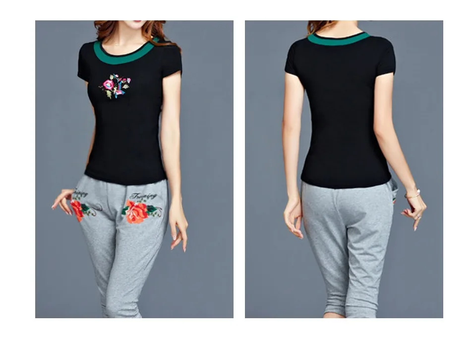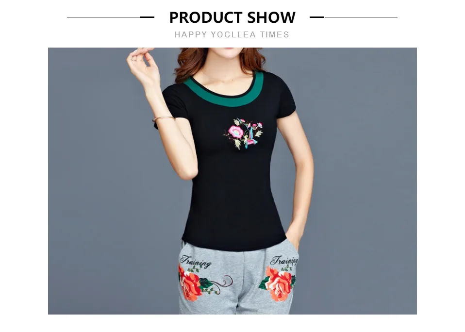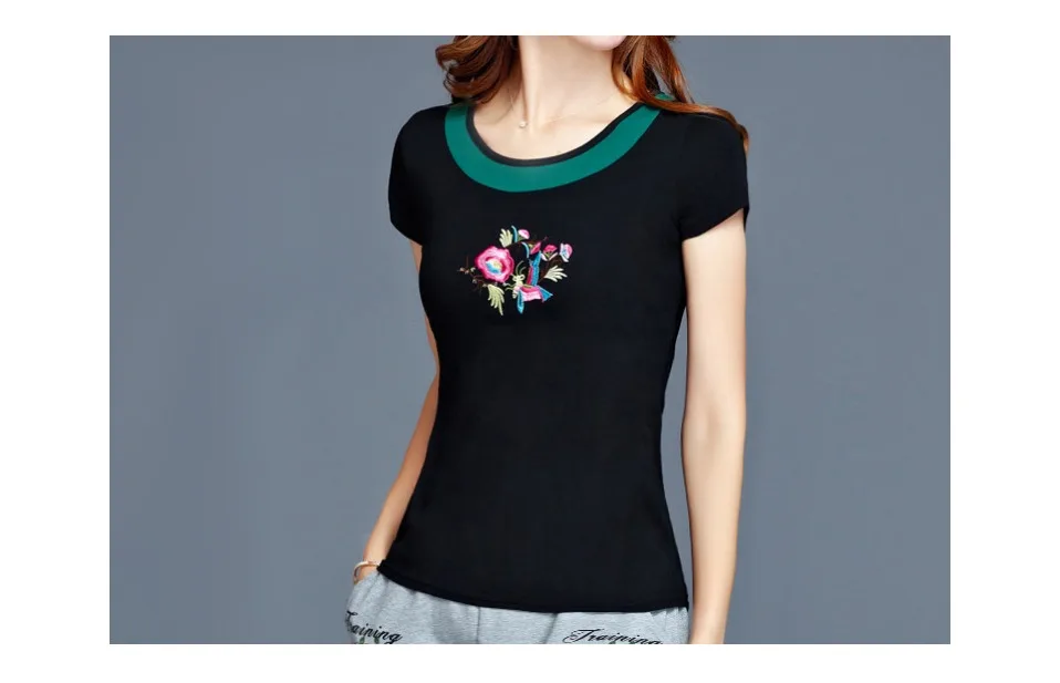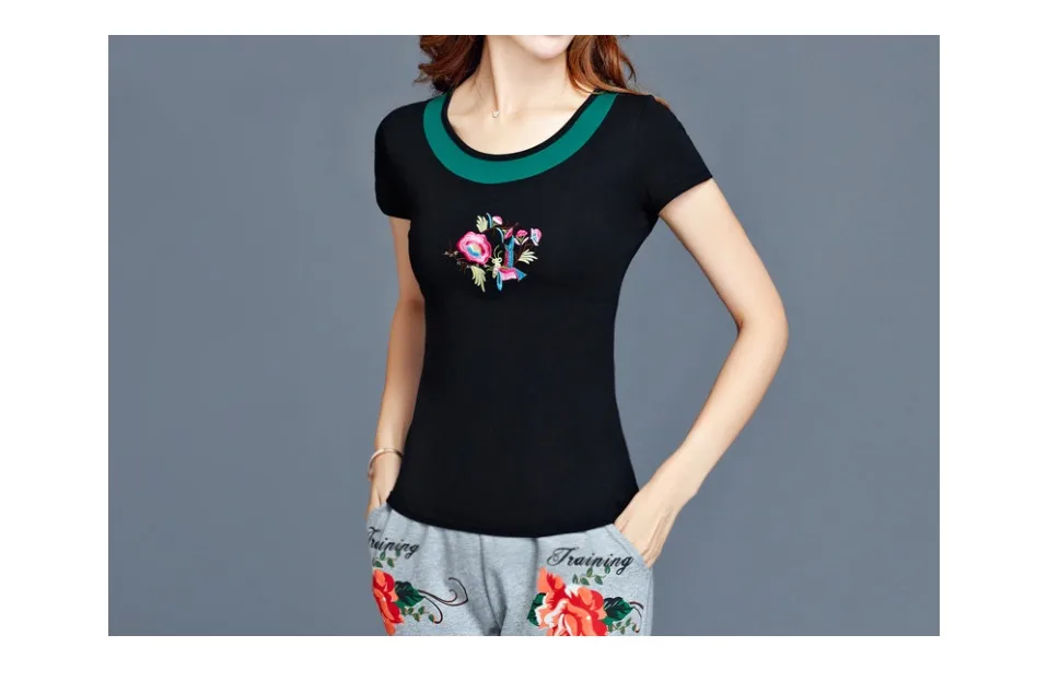 Летняя футболка с вышивкой, женская футболка с коротким рукавом и круглым вырезом, Женская однотонная Базовая хлопковая футболка, женские топы