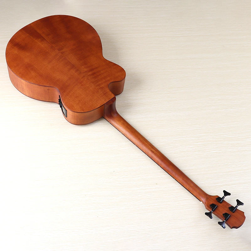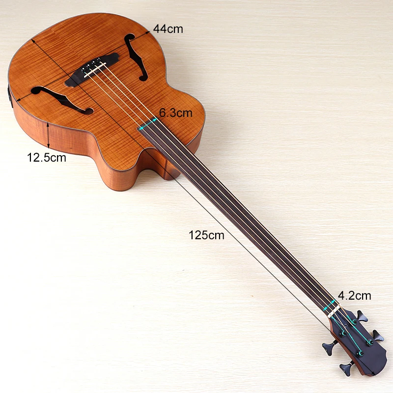 Полная пламя дуб 43 дюймов Джамбо бас акустическая бас гитара fretless 4 струнные бас гитара с EQ Электрический акустический gutiar