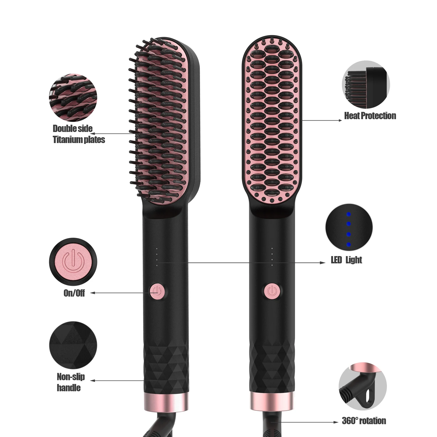 ❤【Быстрый нагрев 】подогрев в течение 30 секунд, различные уровни температуры для всех типов волос. Расправленная щеточка быстро выпрямила и выпрямила волосы, значительно уменьшая время, необходимое для укладки. Нагревается в течение 30 секунд через интегрированный PTC, обеспечивает Быстрое нагревание, Равномерность Температуры, безопасность и надежность