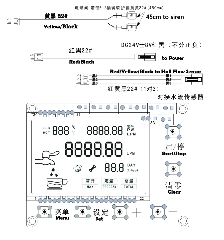 1. Контроллер цифрового дисплея US211MA может отображать мгновенный поток, блок потока L / min (или GPM),