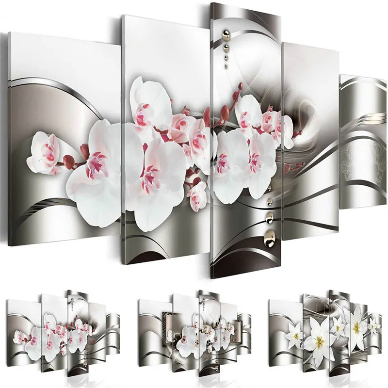 5 шт. HD Печать холст картина Современная Настенная живопись розовые орхидеи плакаты и принты цветы картинки для