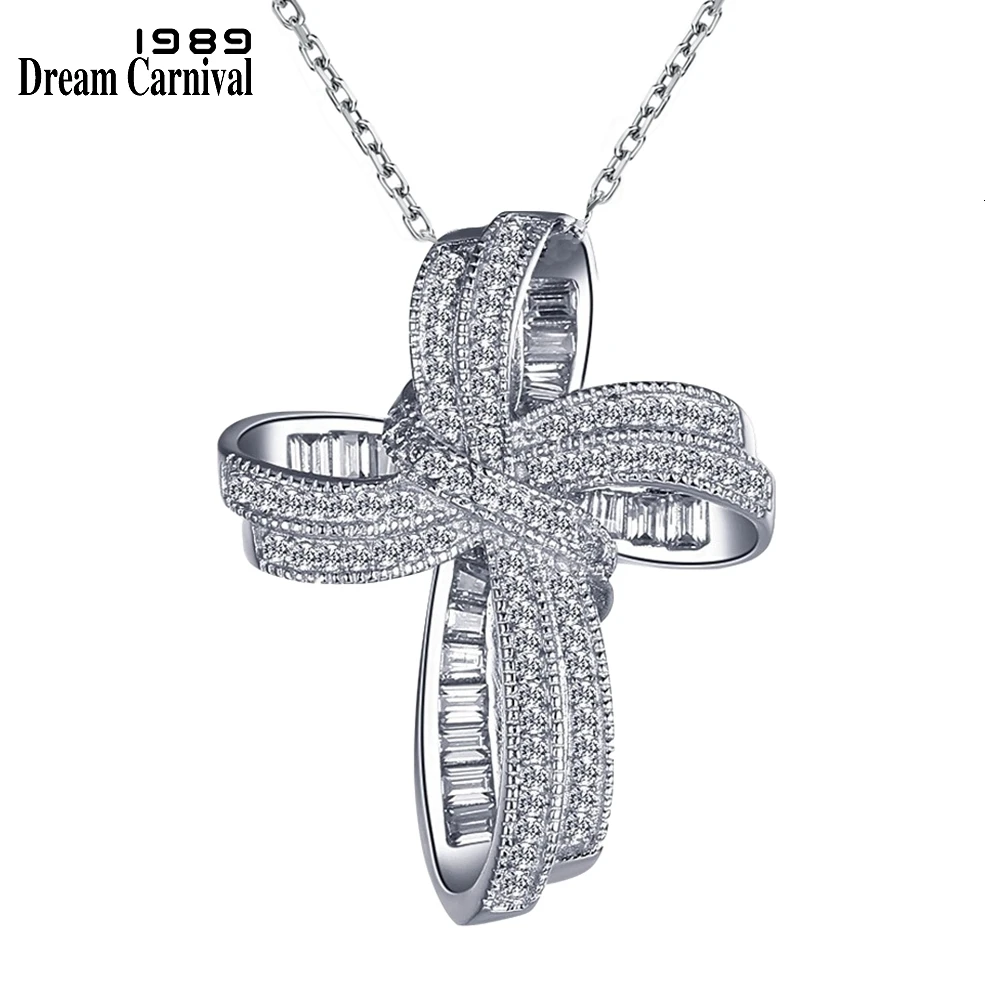 DreamCarnival 1989, Модный Крест, подвеска в форме банта для ожерелья, цепочка, белый кубический цирконий, модное ювелирное изделие, рождественский подарок, SZ12599