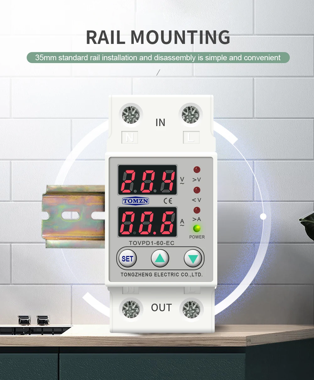 60A 230 В din рейка Регулируемая Защита от перенапряжения защитное устройство реле с