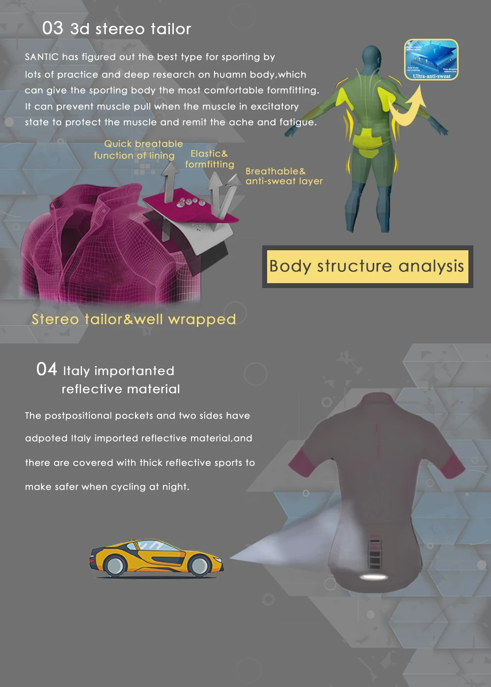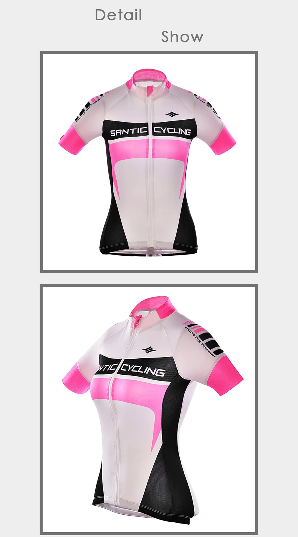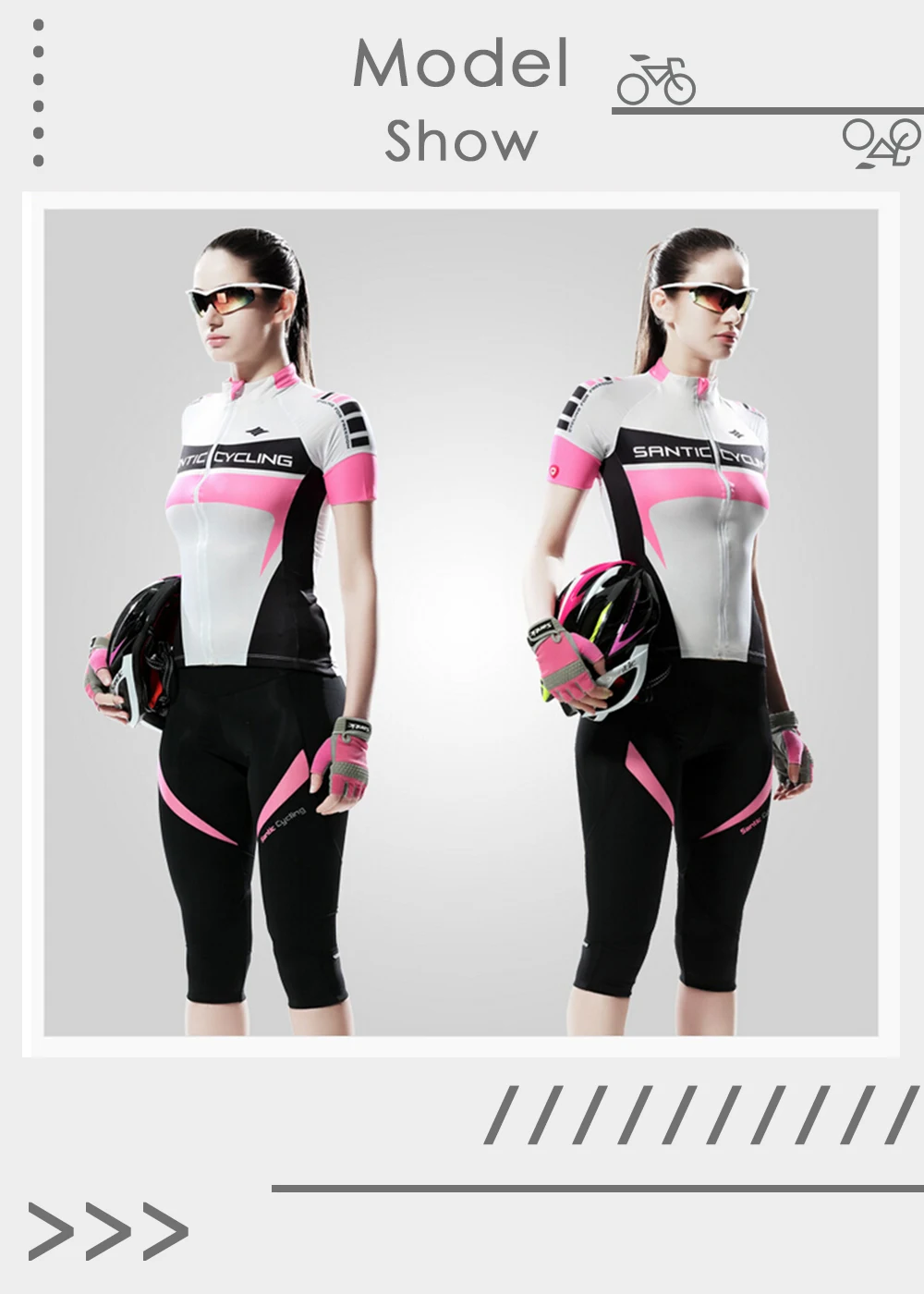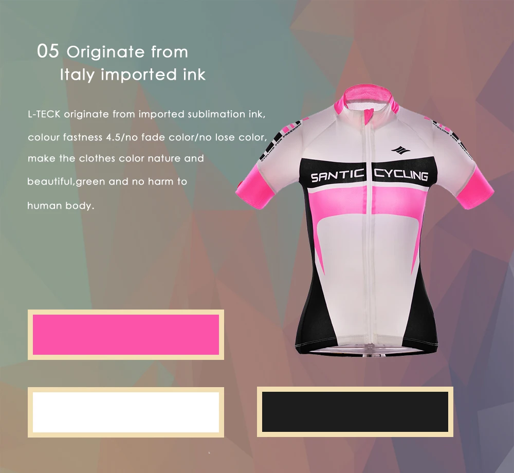 Santic Весна и лето новая дышащая трикотажная ткань с рукавом «четверть» имеет множество характеристик: тропическая растительная печать, невидимая Полуоткрытая молния, отражающая офсетная печать в форме капли, асимметричный дизайн манжет, нескользящий Силиконовый ремень на подоле, Три задних кармана, встроенный водонепроницаемый слой и внешняя светоотражающая полоска. Выбор этого велосипедного костюма-это профессиональный выбор!