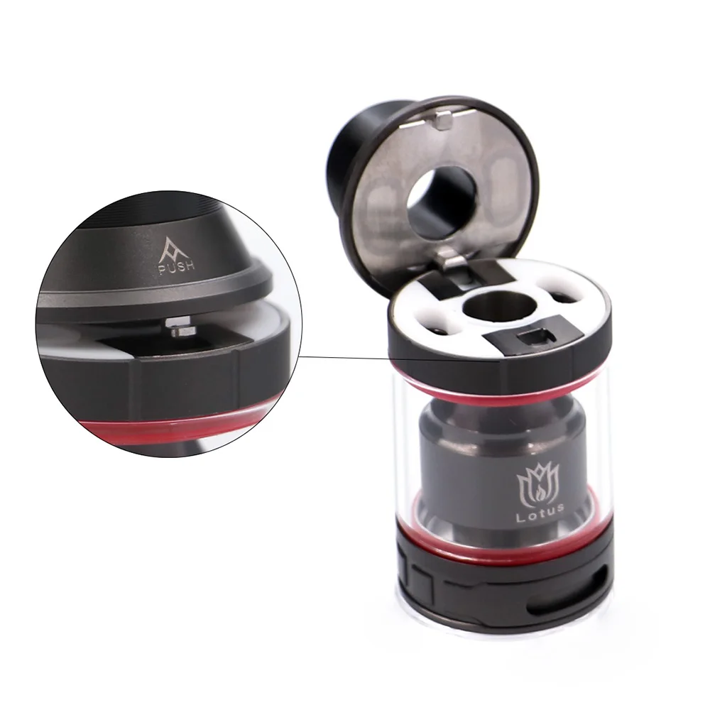 Hugsvape Lotus RTA, танк 24mm rebuild-able, отличает астетическим дизайном палубы построения формы лотоса, которая конструирована для того чтобы приспособить двойные строения катушки. Lotus RTA имеет схему push-to-refill, которая облегчает пополнение электронной жидкости. С системой воздушного потока типа гнезда кондиционера, воздух ударяет в катушки сразу от стороны и дна, поставляя большие облака и превосходный вкус.
