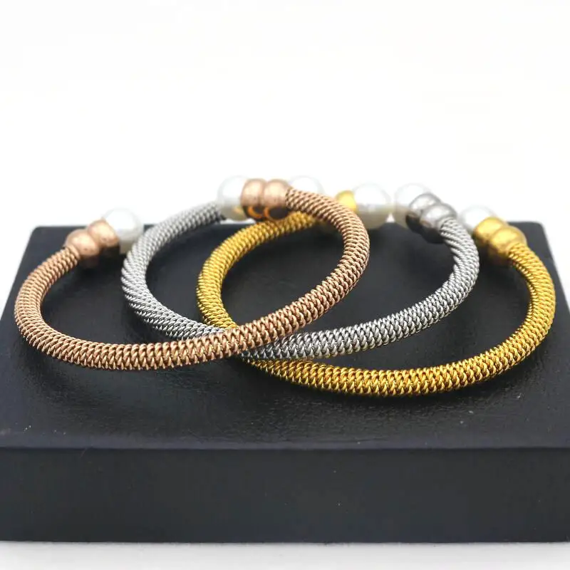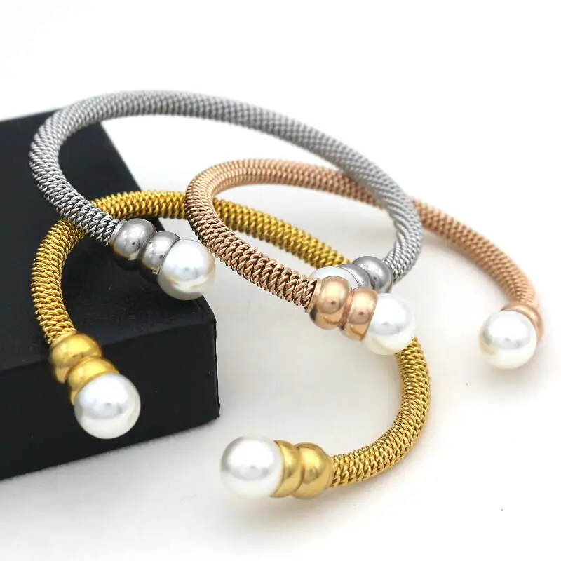 Брендовый милый Мишка из нержавеющей стали с сетчатой поверхностью, имитация жемчуга, браслеты для женщин, Роскошный Браслет-манжета, модные ювелирные изделия