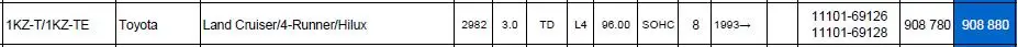 Применение:Для Toyota Land Cruiser 4-Runner Hilux 3.0L 1993-Двигатель: 1KZ-TE2982cc 3.0TD SOHC 8v 1993-AMC:908 780 908780 подходит для for908 880 90888086-0531