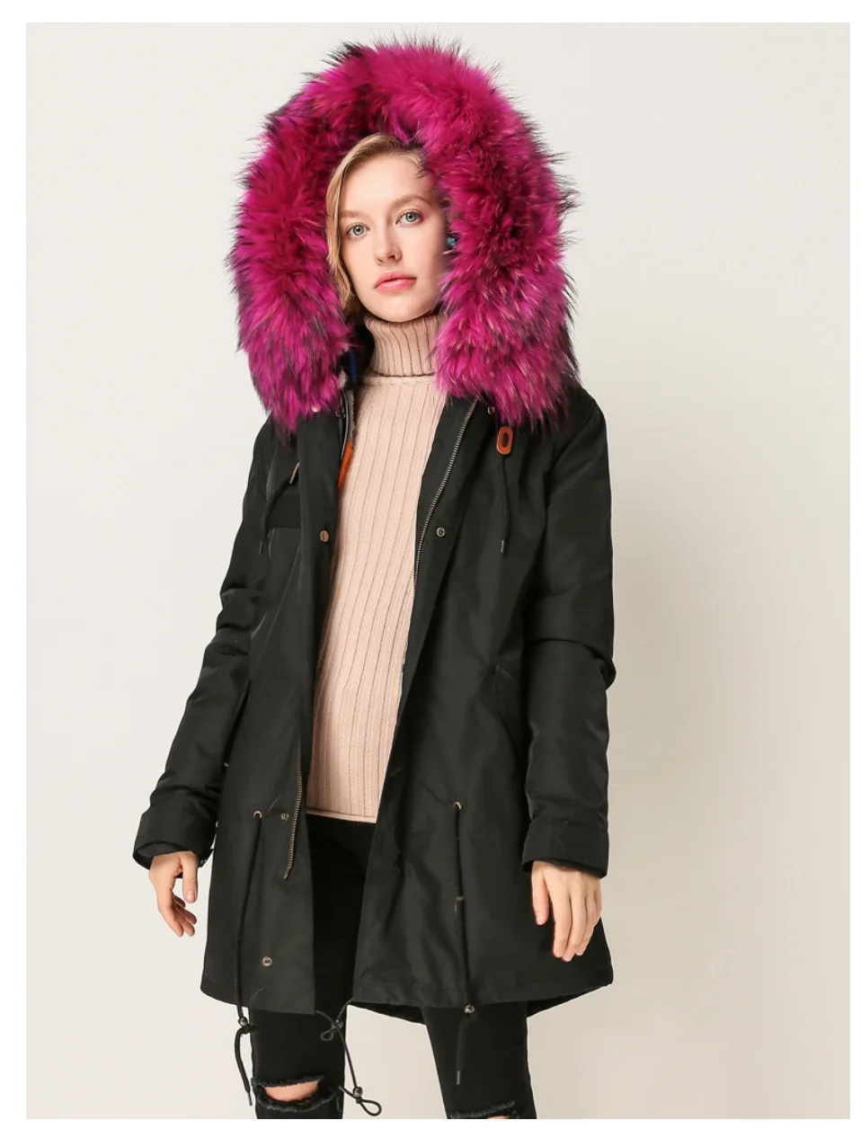 Реальная Кисть из меха норки Мех И Реальная Енот Воротник-стойка