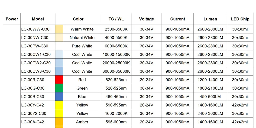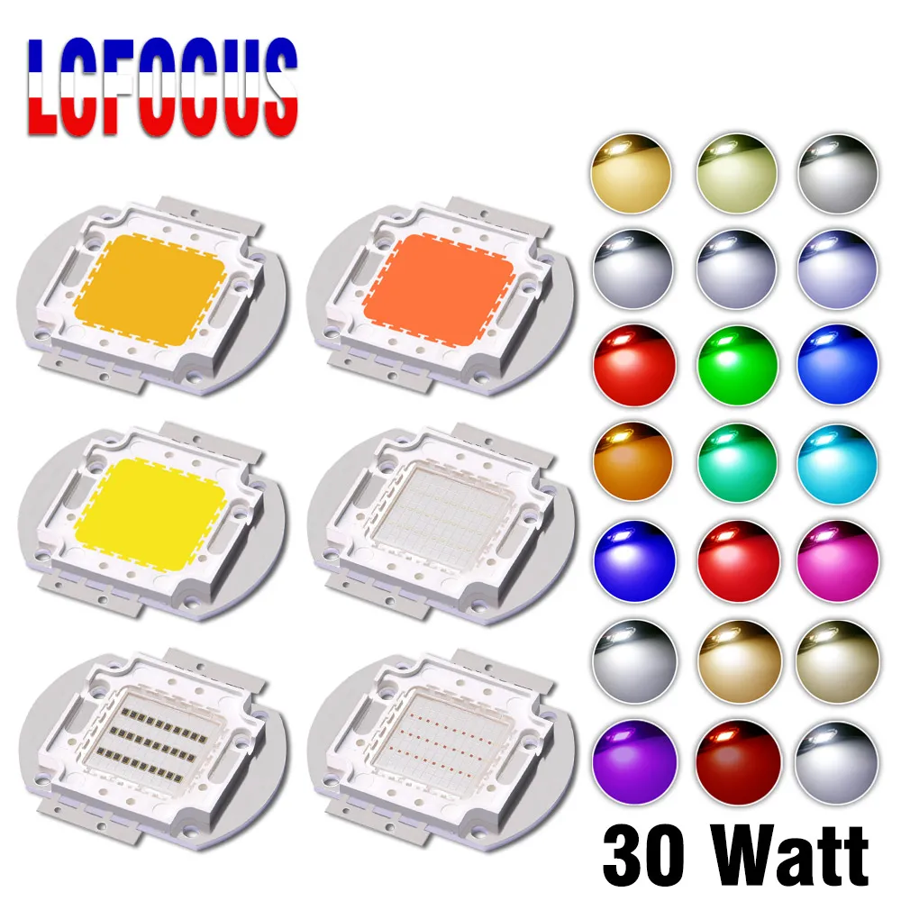 Высокая мощность светодиодный 30 Вт чип натуральный холодный теплый белый красный синий зеленый желтый RGB 440nm 660nm полный спектр для DIY 30 Вт прожектор