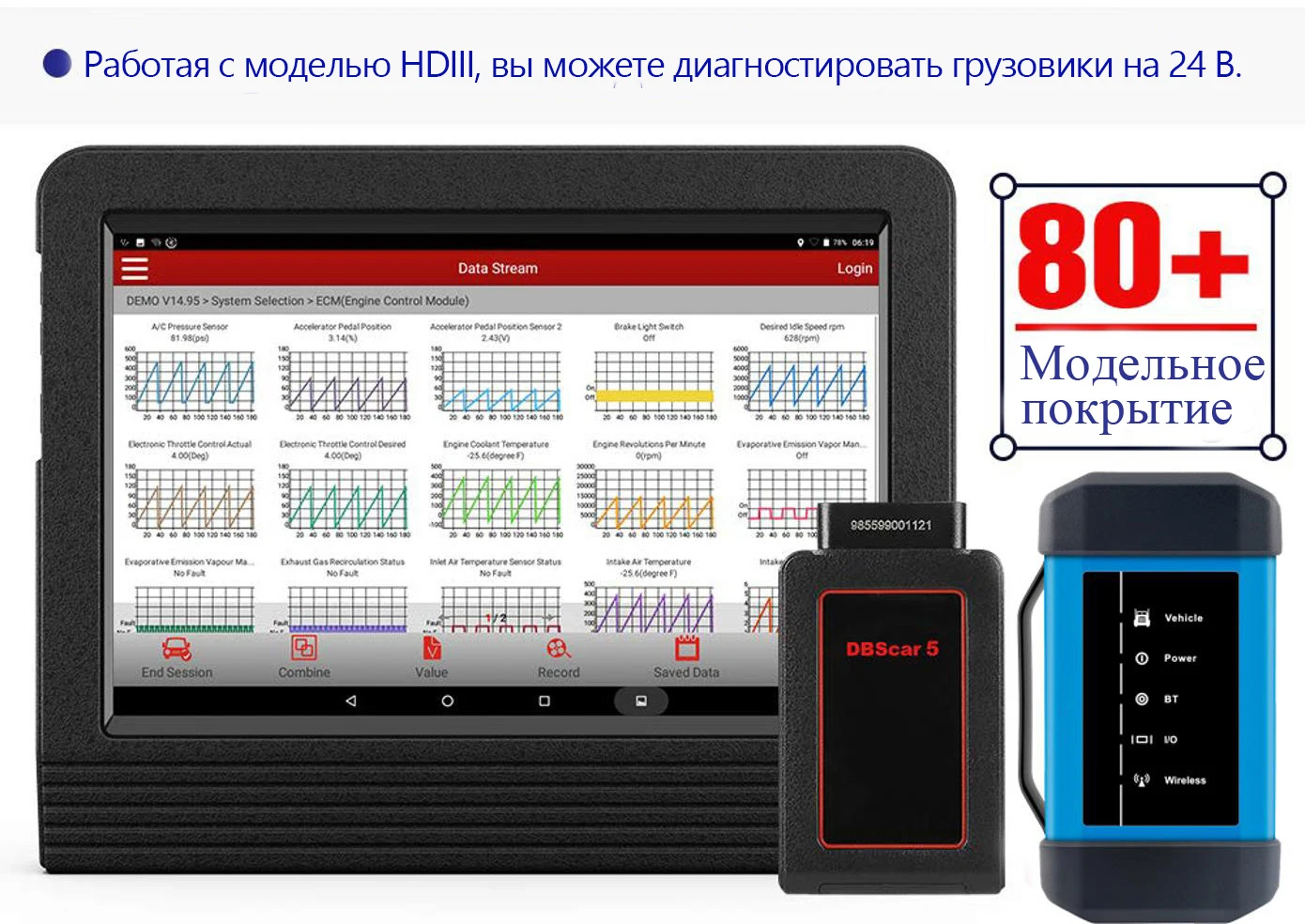 X431 V + может тестировать бензиновые транспортные средства и грузовики с батареей 12V или 24V