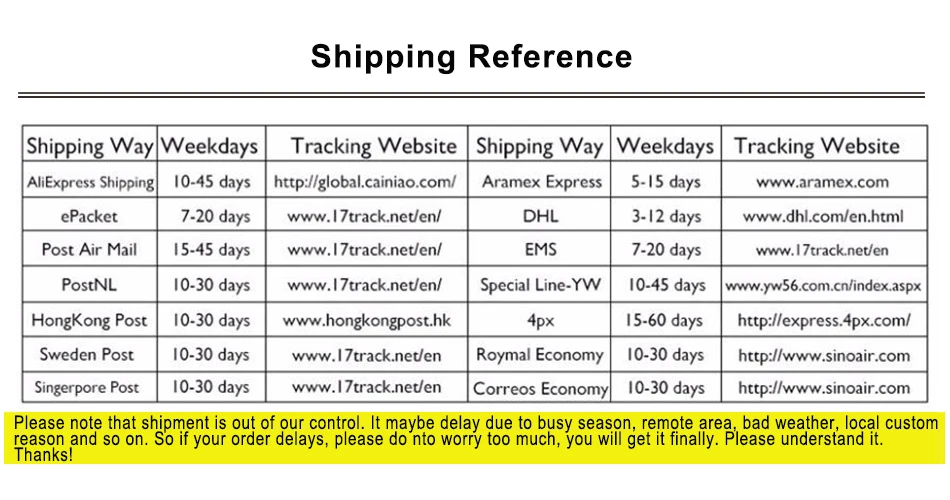 3. Если сумма заказа превышает $150, мы отправим его бесплатно через DHL/Fedex.