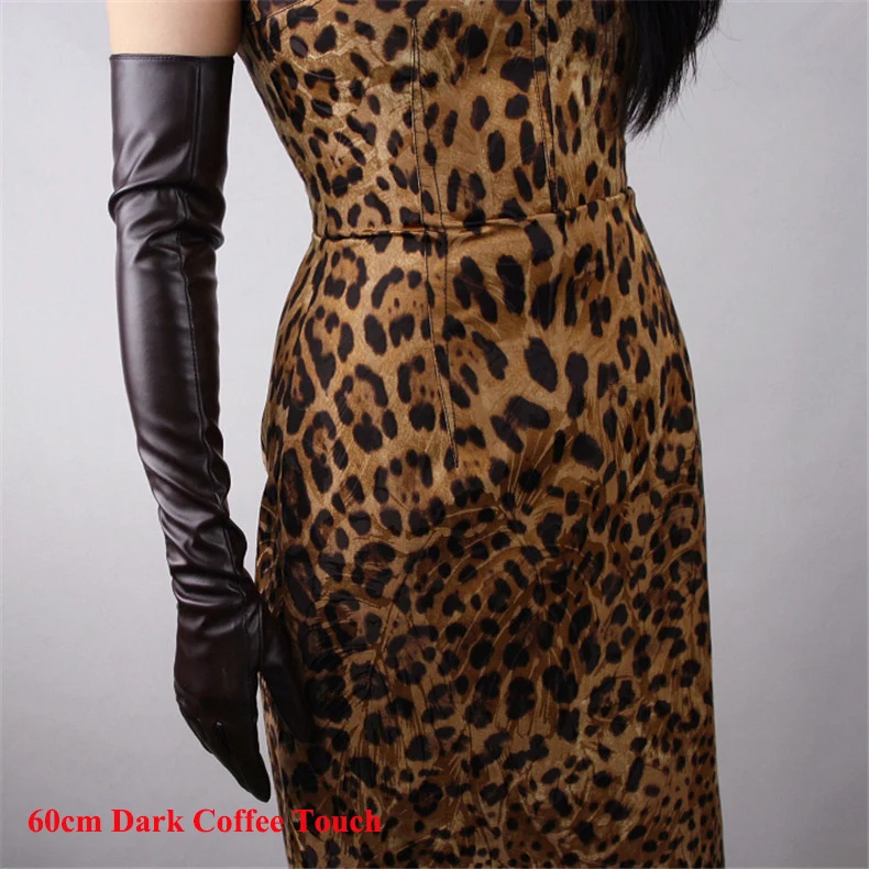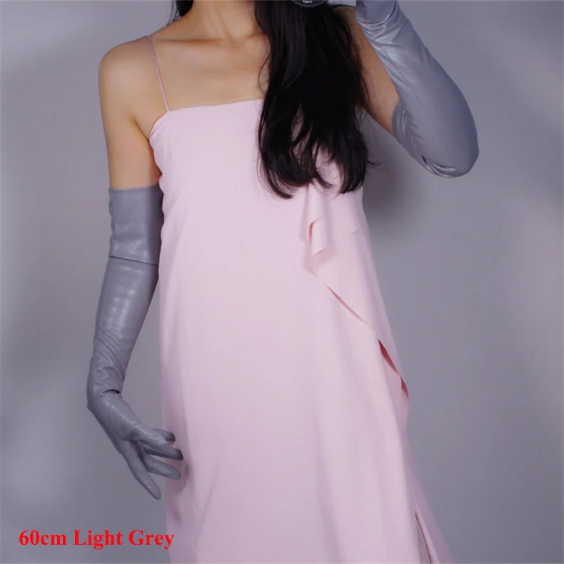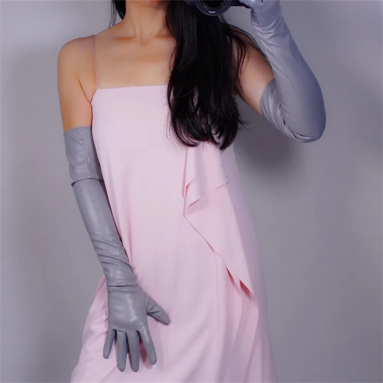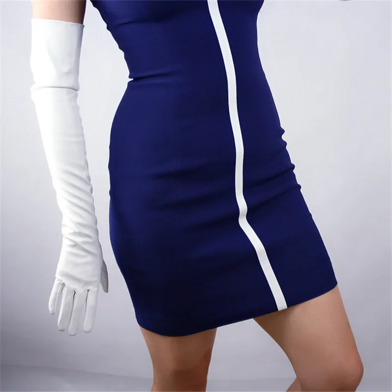 60 см длинные кожаные перчатки, длинные кожаные перчатки из овечьей кожи с имитацией локтя, белые женские перчатки с сенсорным экраном, WPU32-60
