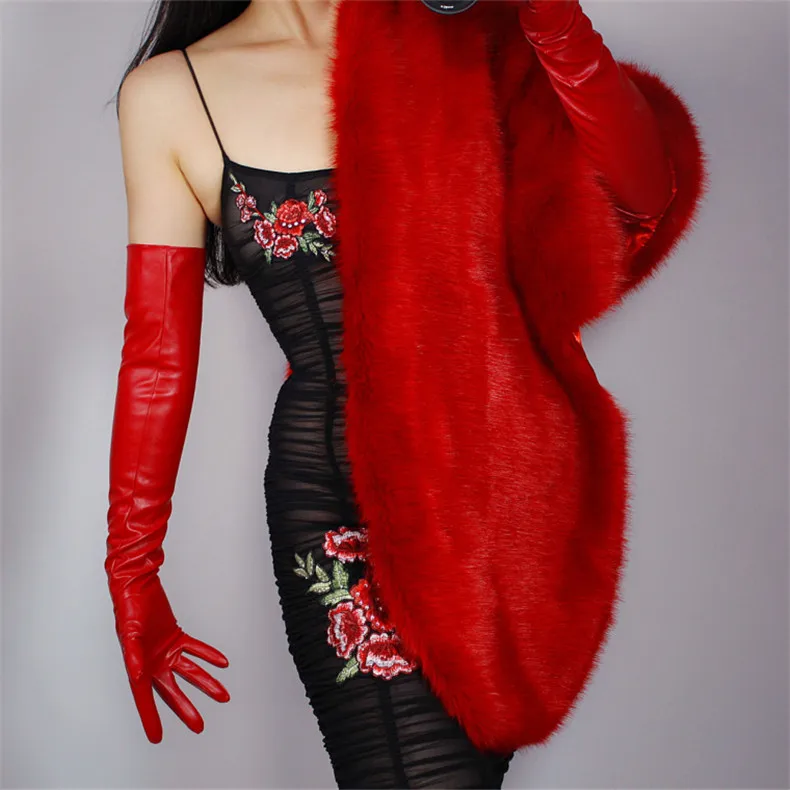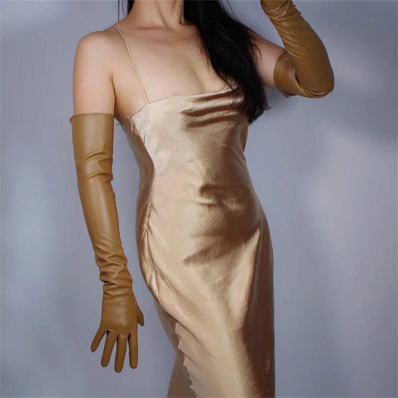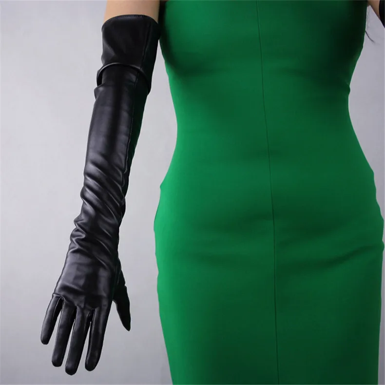 Очень длинные кожаные перчатки! Вы можете носить юбку зимой! Материал: искусственная кожа; Искусственная кожа; Без подкладки; Небольшая гибкость.