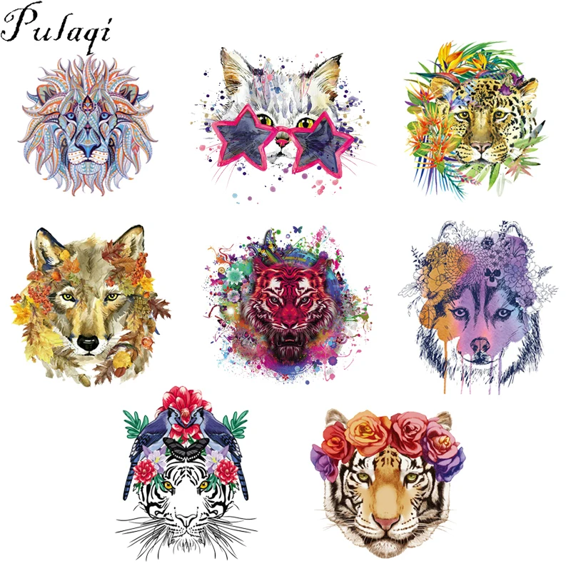 Pulaqi/крутые Детские футболки с изображением Льва, тигра, нашивки с изображением волка, утюга, теплопередача, украшение для животных