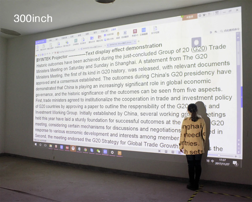 Макс. 300 дюйма, в 36 раз больше, чем 50 дюймовый телевизор