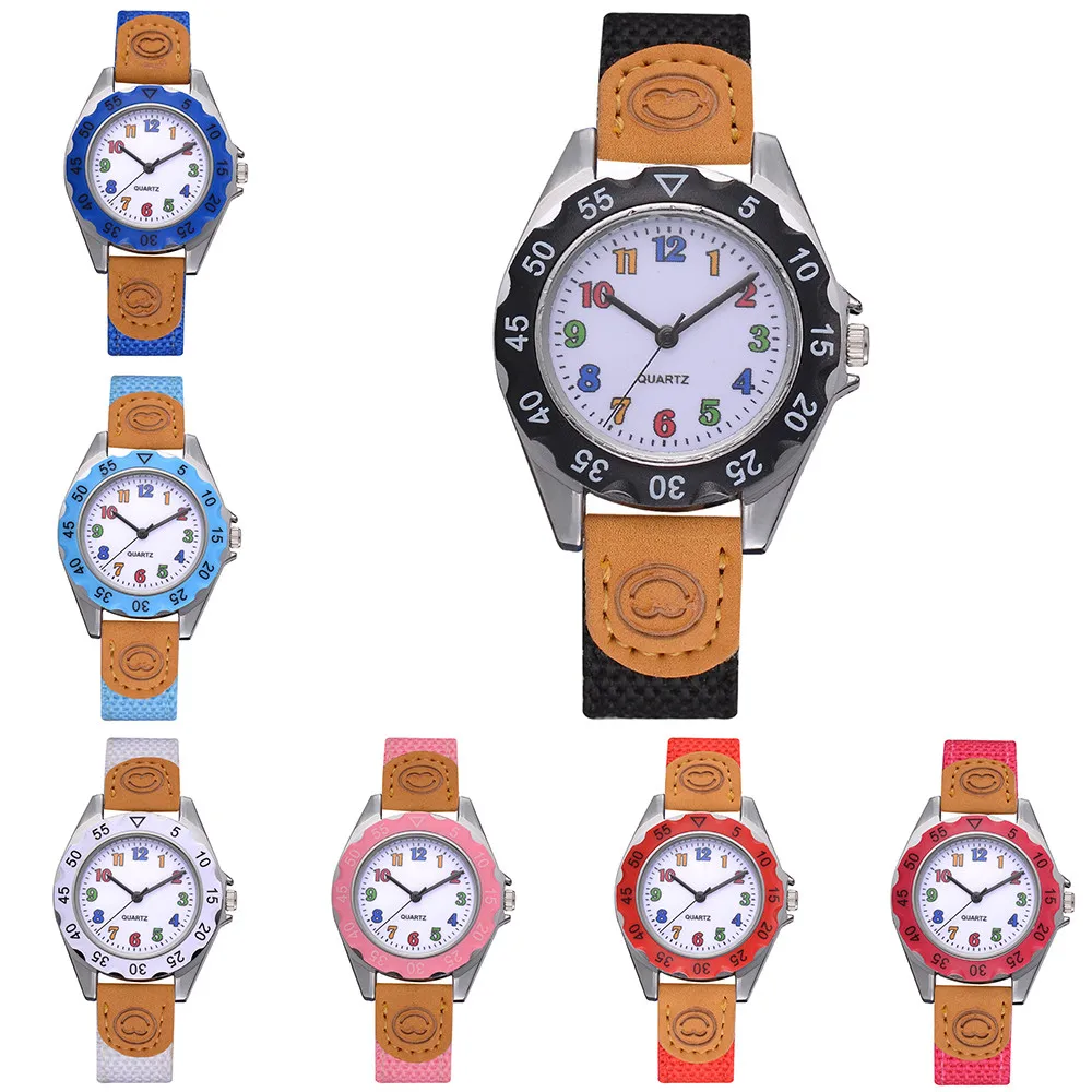 1 x милые кварцевые часы для мальчиков и девочек, детские наручные часы с тканевым ремешком для студентов