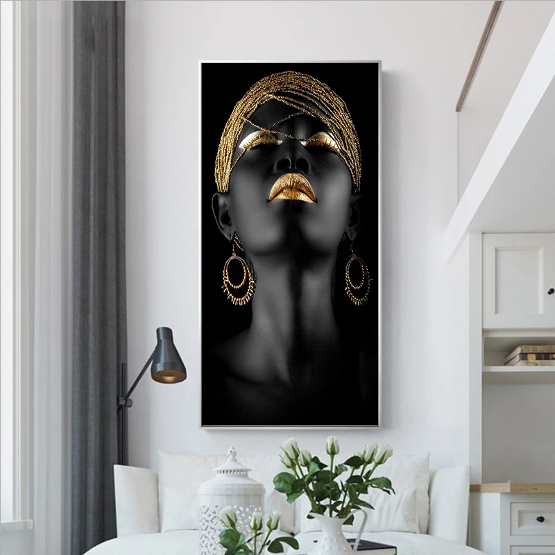 Большой размер, горячая Распродажа, золотой, черный, женский холст, настенная живопись, Художественная печать, цифровая фотопечать, украшение для дома, настенные картины без рамы