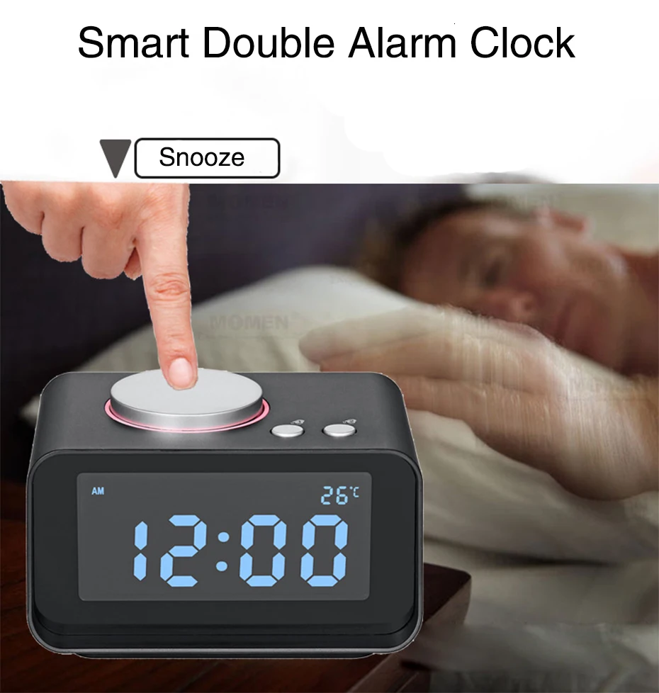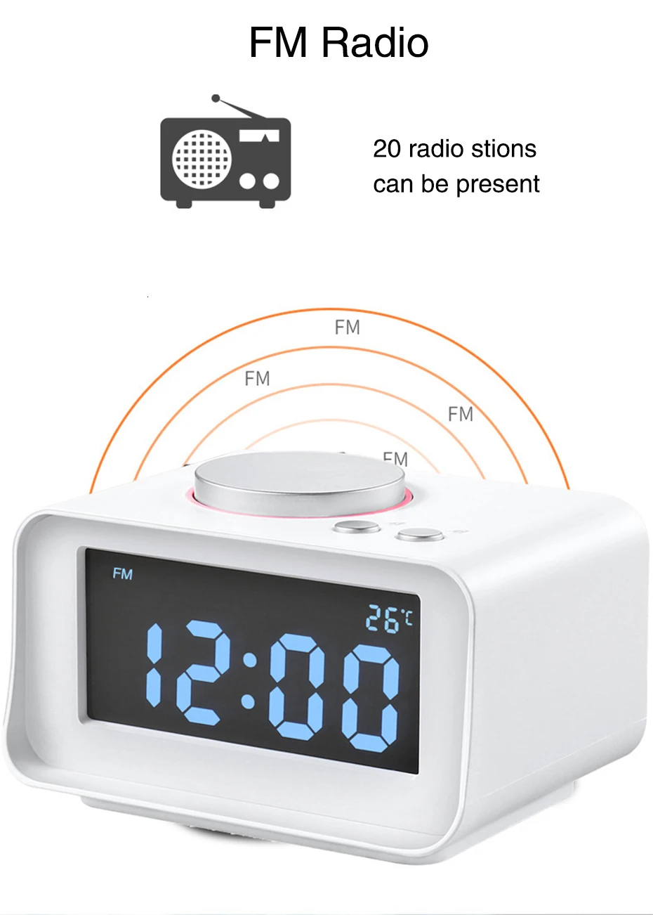 Будильник в сочетании с функцией fm-радио и музыкального плеера, наш будильник не только ваш воображение! Громкость колокольчика регулируется и источник кольца можно переключать между встроенной музыкой и fm-радио. Позвольте вам просыпаться самым удобным образом каждое утро!