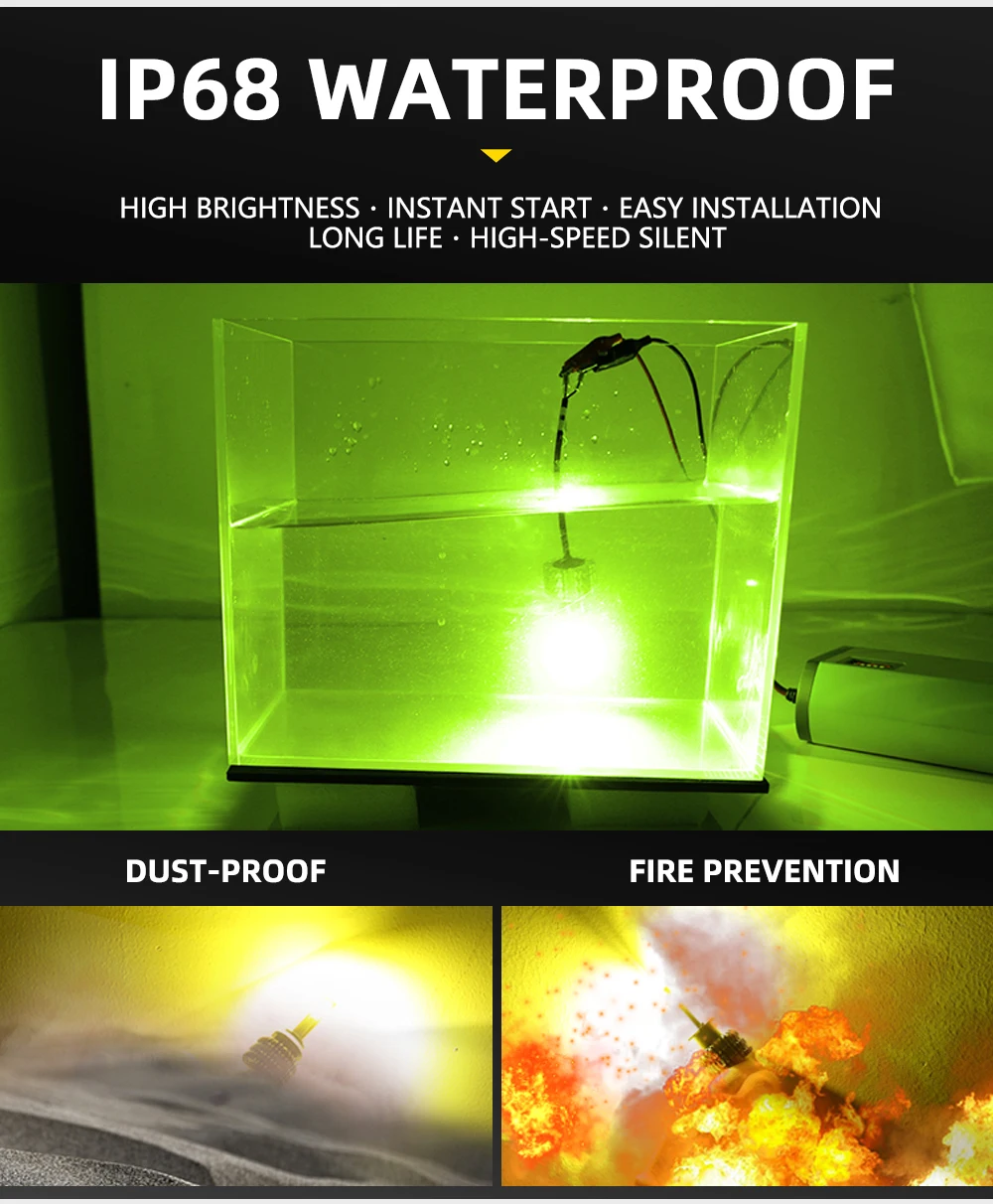 Характеристики: Напряжение: 12-24 В постоянного тока Светильник: желтый, белый, зеленый. Люмен: 10 лм/пара Светильник Мощность: 50 Вт/пара Скорость IP: IP 68 Срок службы: >30000 часов Рабочая температура: -40 - + 80 градусов по Цельсию Применение: фара дальнего или ближнего света Тип вилки: Двойной луч (Дальний свет + Ближний свет): H4 Одиночный луч: H1 H3 H7 H8 H9 H11 HB3/9005 HB4/9006 H27/880/881 Адаптер: Наши лампы-это разъемы stardand, но для некоторых автомобилей, использующих лампы H7, нужны дополнительные адаптеры. Canbus: без ошибок для 95% автомобилей. (Не подходит для специальных автомобилей, например: не для немецких автомобилей, не для сидений, не для Volvo, не для Scania и так далее...) Поэтому для большинство автомобилей, не нужно купить внешний can-bus.