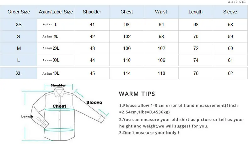 Таблица размеров предназначена только для справки, вы можете связаться с нами, если вы не знаете свой размер заказа