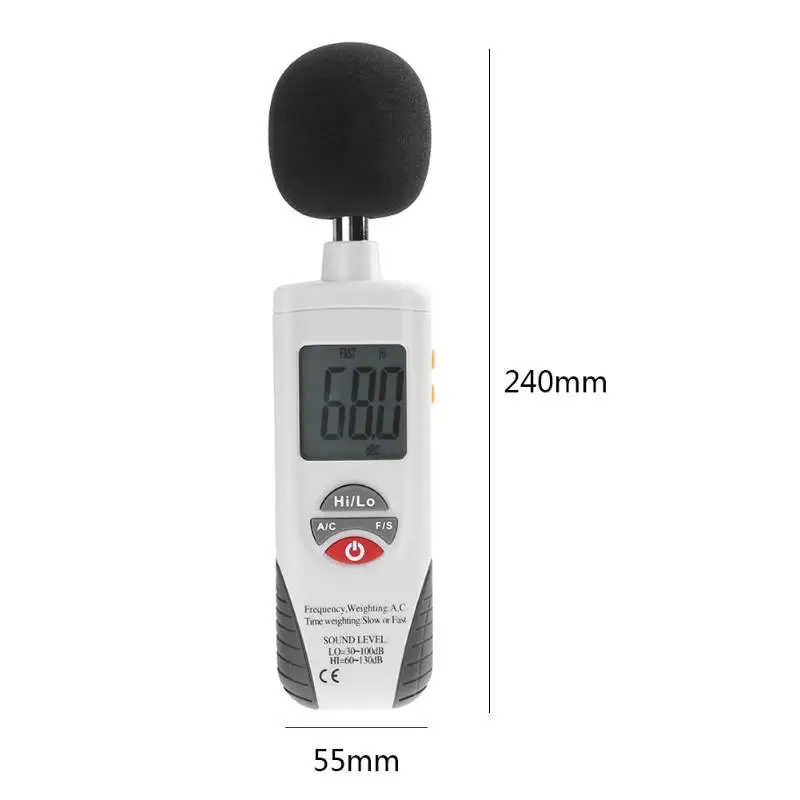 HT-850 портативный измеритель уровня шума Тестер уровня звука диагностический инструмент Спецификация: Стандарт применения: IEC651 тип 2, ANSI S1.4 Тип 2 Частотный диапазон: 31,5 Гц-8 кГц Диапазон измерения: 30-130 дБ Точность: ± 1,5 дБ (@ 94 дБ, 1 кГц) Микрофон: 1/2 дюйма поляризованный емкостный микрофон Калибровка: @ 1 кГц Синусоидальная волна, сигнал 94 дБ ЖК-дисплей: с подсветкой Цифры дисплея: 3-1/2 Разрешение: 0,1 дБ Максимальный дисплей: 0,5 сек Время отклика: быстрая 125 мс, медленная 1 с Функция будильника: отображение «Выше», когда вход находится вне диапазона Автоматическое выключение: 15 s Рабочая температура: 0 ℃-40 ℃ Рабочая влажность: 10-90% относительной влажности Температура хранения:-10-60 ℃ Влажность хранения: 10-75% относительной влажности