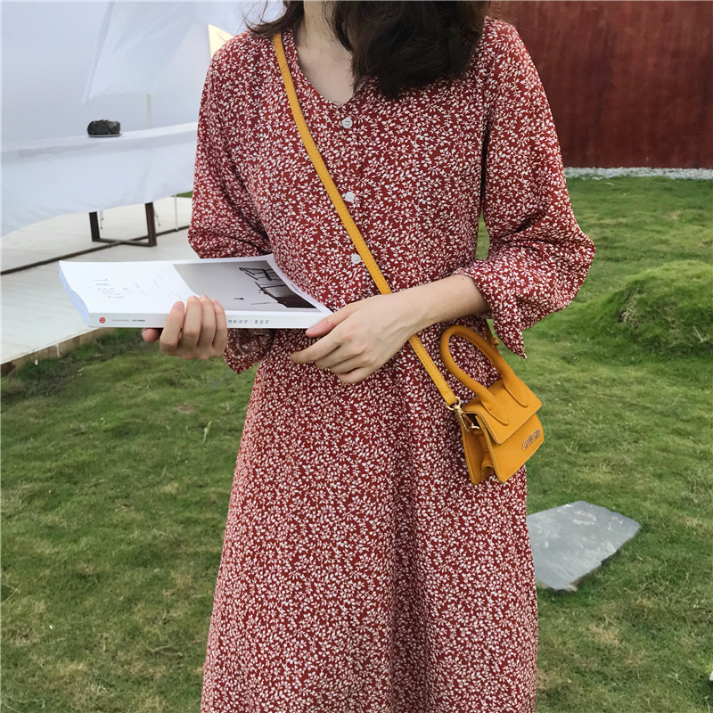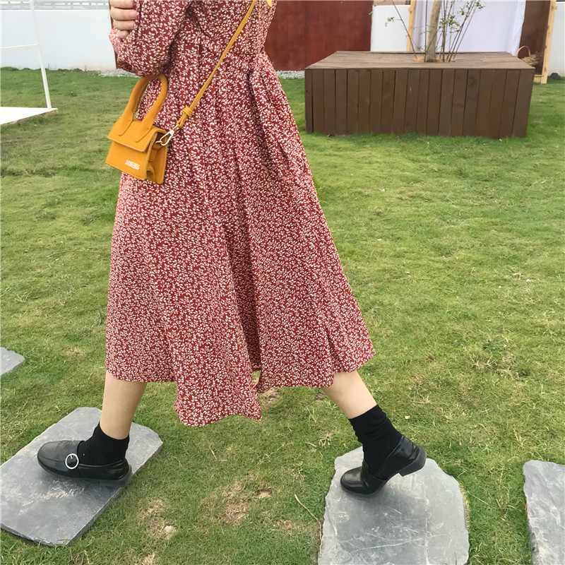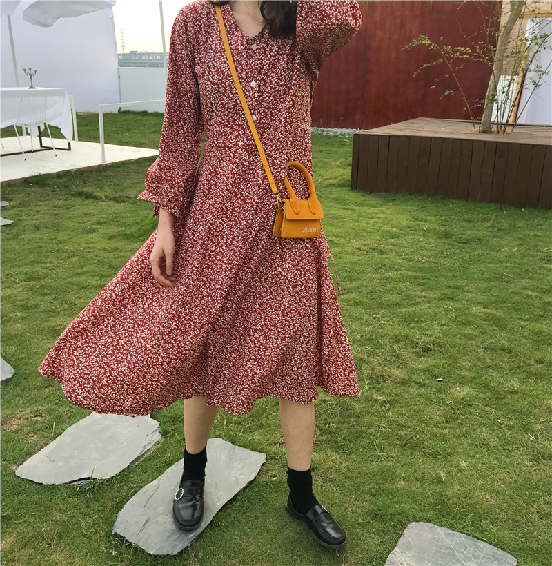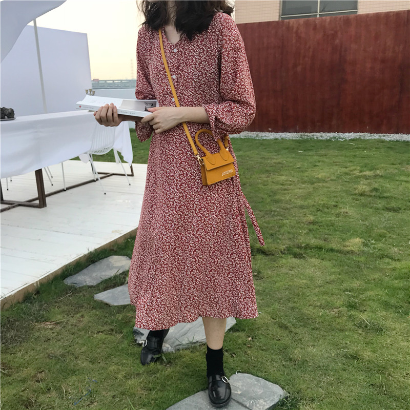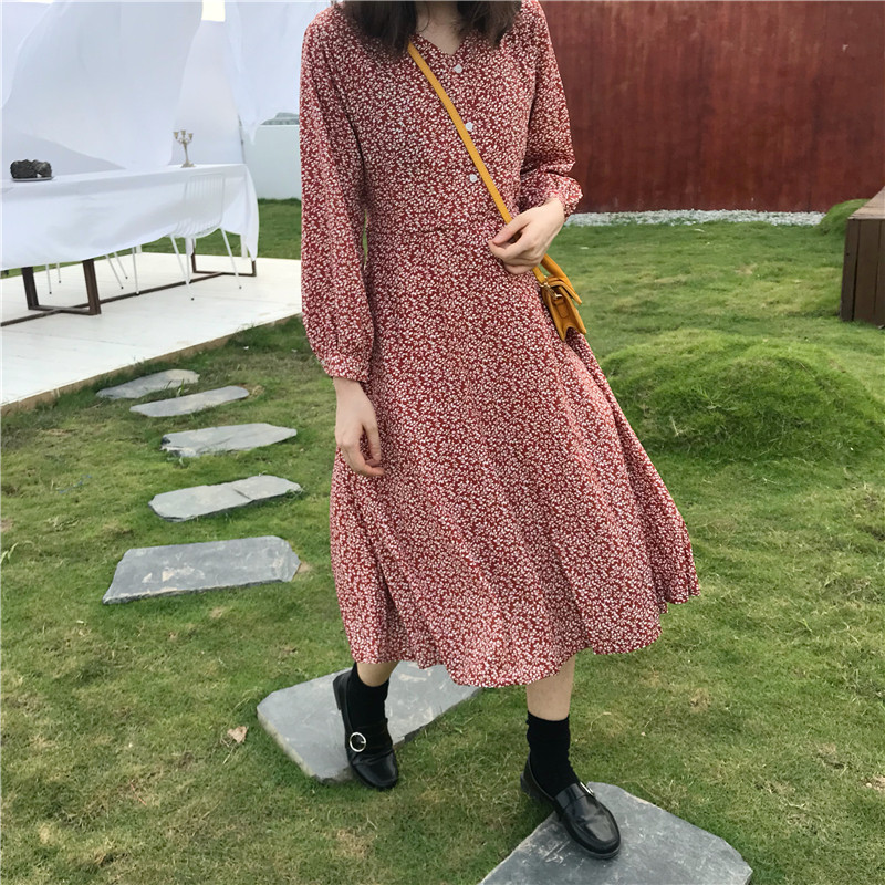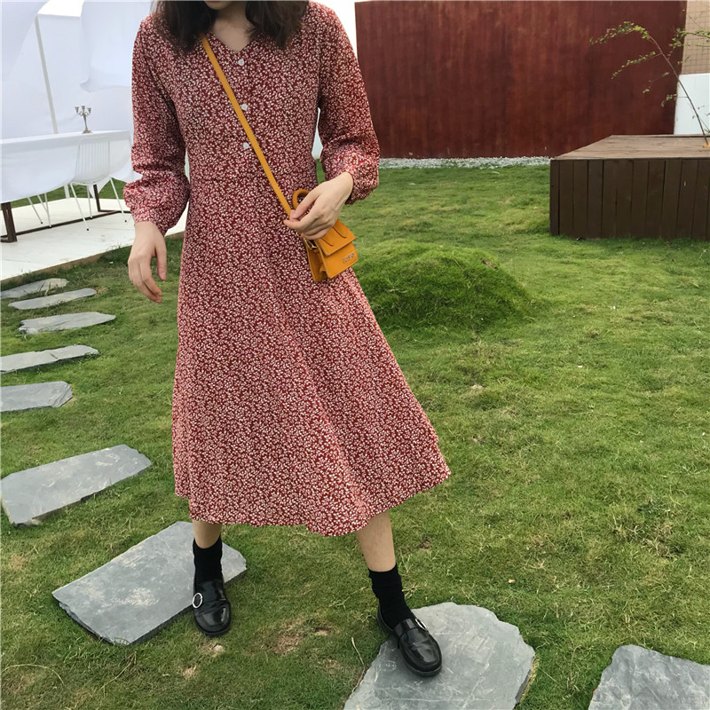 Осеннее платье 2018 женское с цветочным принтом свободное шифоновое длинное платье повседневное платье с длинным рукавом женское s