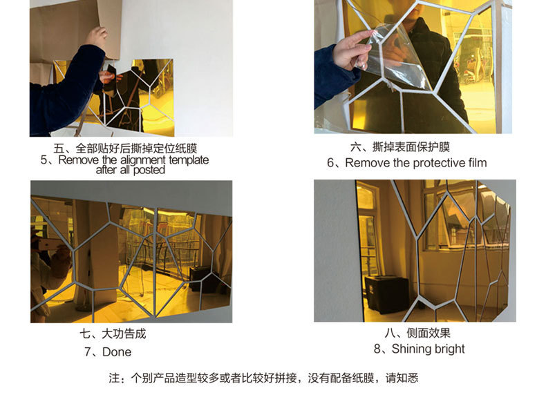 Рекомендуемая поверхность Мы используем сильный клей на задней части наклейки, но мы напоминаем вам установить продукт на полностью чистую, ровную и гладкую поверхность, чтобы стикер мог оставаться в течение многих лет.