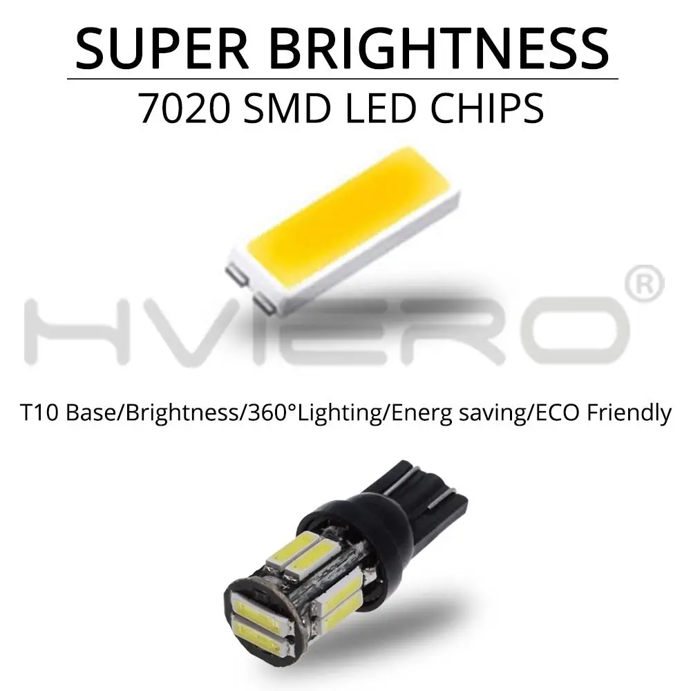 Каждая лампа T10 содержит 10 высококачественных светодиодных чипов 7020 SMD, которые в 3 раза ярче, чем на складе OEM желтоватые вольфрамовые лампы.