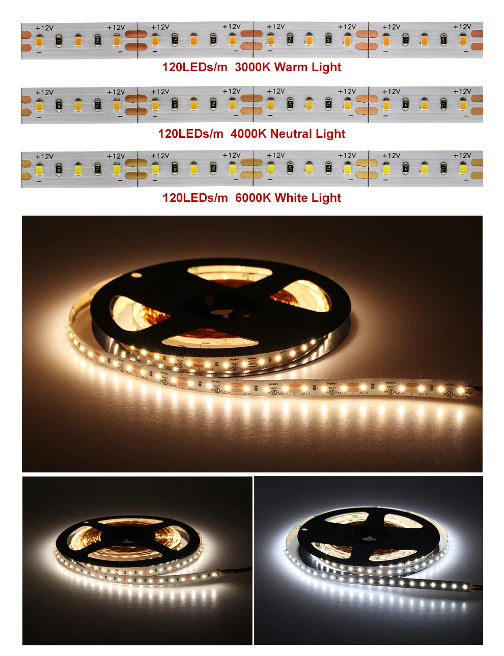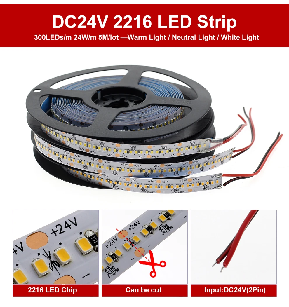 DC12V 120 светодиодов/метр 9,6 Вт/МетрPCB WIdth 8 мм DC24V 300 светодиодов/мEter24 Вт/мEterШирина печатной платы 10Мм КолоУR TEmperature: Теплый свет3000 K/нейтральныйСвет4000 K/холодныйСвет6000 K Примечание: ПайкаЯвляется очень нормойЭлектронные продукты,Никаких проблем с качеством. Светодиодная лента может паять от шт до 5 м длины, если выУмЭто,Не размещайте заказ.