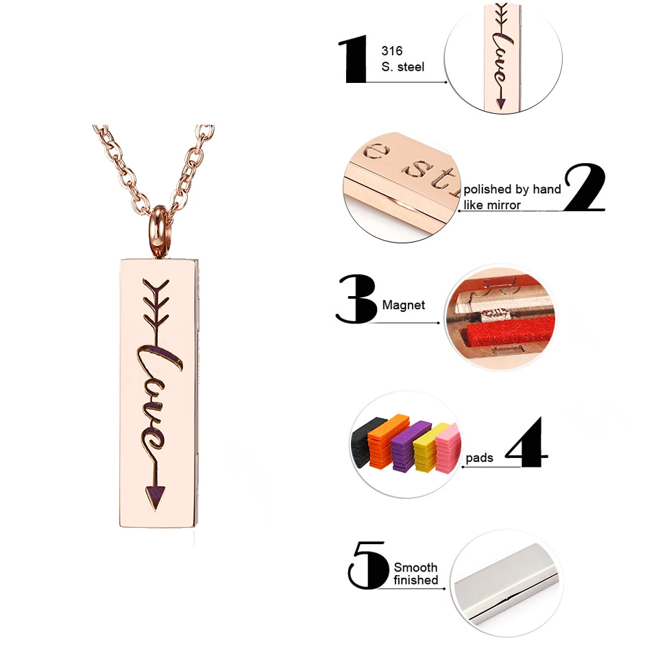> Материал: нержавеющая сталь > Размер медальона: 35 мм * 10 мм * 5 мм > Упаковка: 1 Диффузор + 6 войлочных подушек > Повод для ношения: свадьба, помолвка, годовщина, предложение, вечеринка, ежедневно > Фестиваль: День Святого Валентина, Хэллоуин, Пасха, Рождество, День благодарения, День матери, день рождения > Подарок для: себя, любовника, друзей, семьи > Примечание: Пожалуйста, простите 2-3% ошибок при измерении вручную, и убедитесь, что вы не возражаете, прежде чем делать заказ