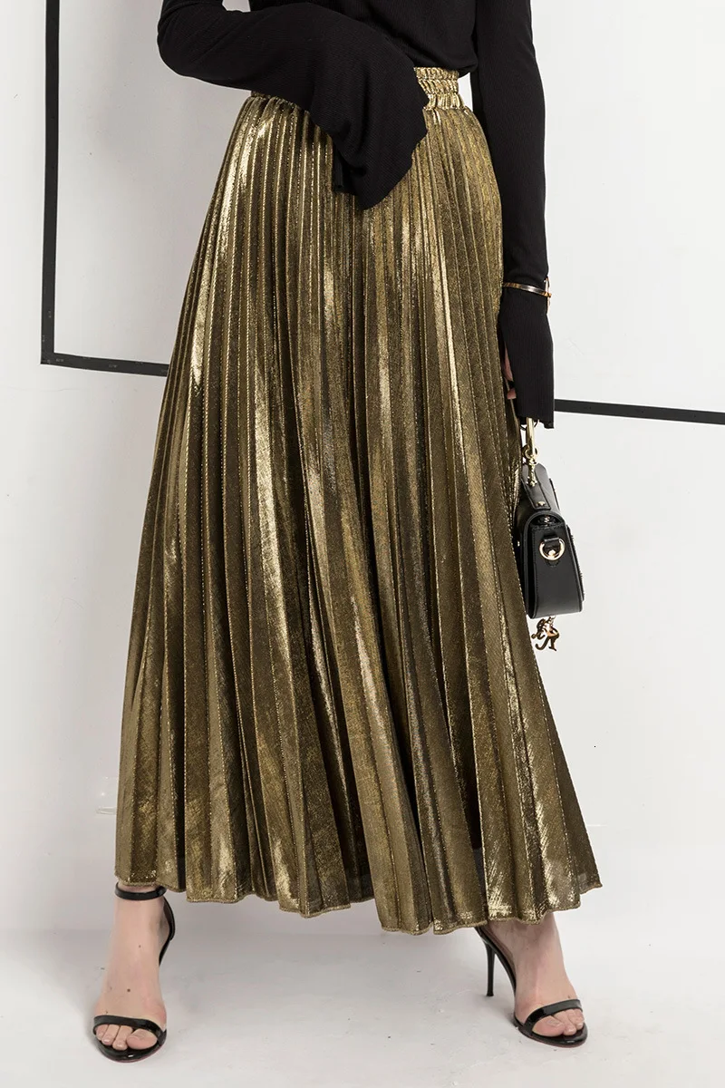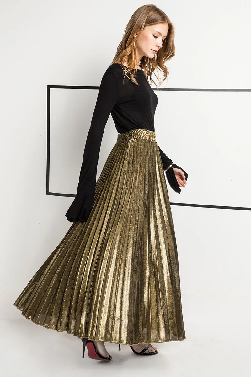 Женские юбки с высокой талией, плиссированная длинная юбка, женская зимняя готическая юбка макси с блестками