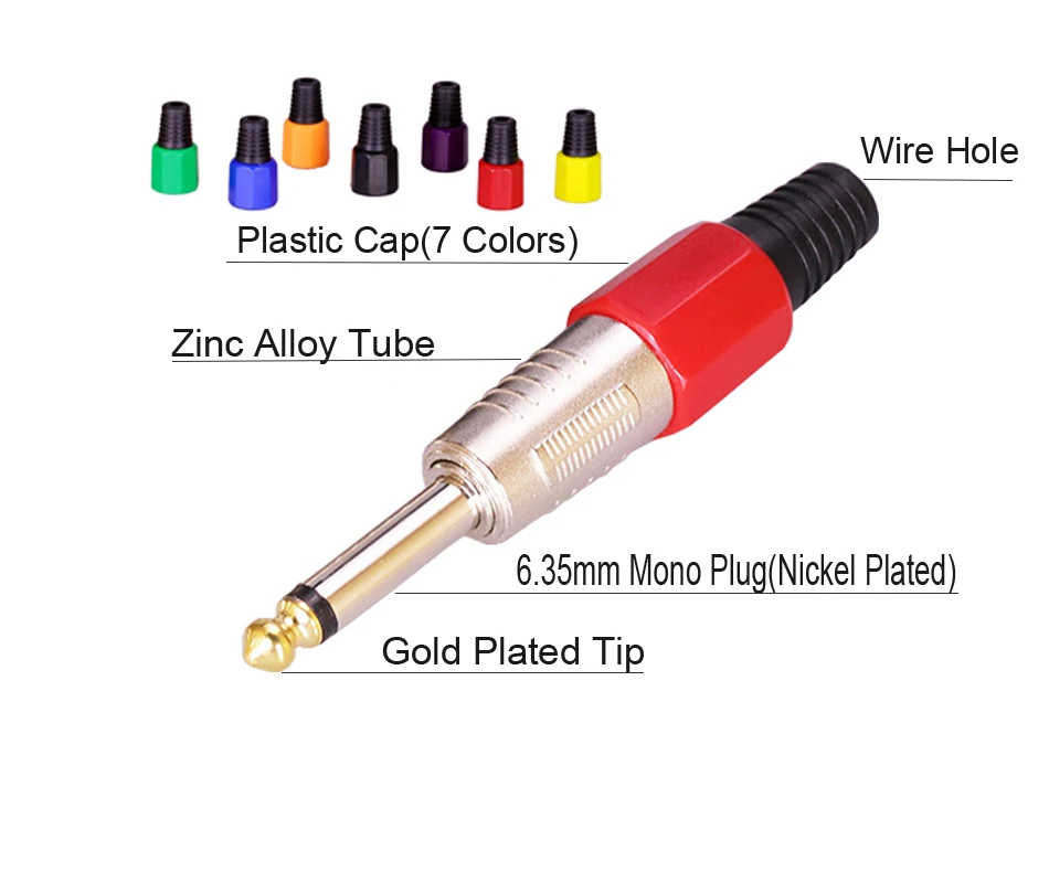 6,35 мм Джек подойдет как для повседневной носки, так штекер микрофон гитары кабель провод разъема 6,3 MM второкурсник сердечника цепи 2 pole 1/4 дюймов аудио разъем адаптера
