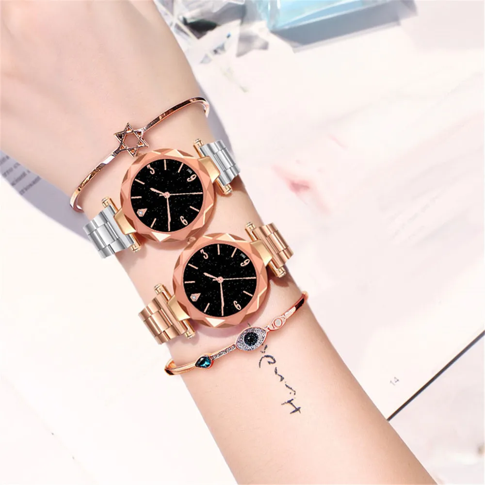 Женская мода роскошный досуг набор стальная полоса Рождество кварцевые наручные
