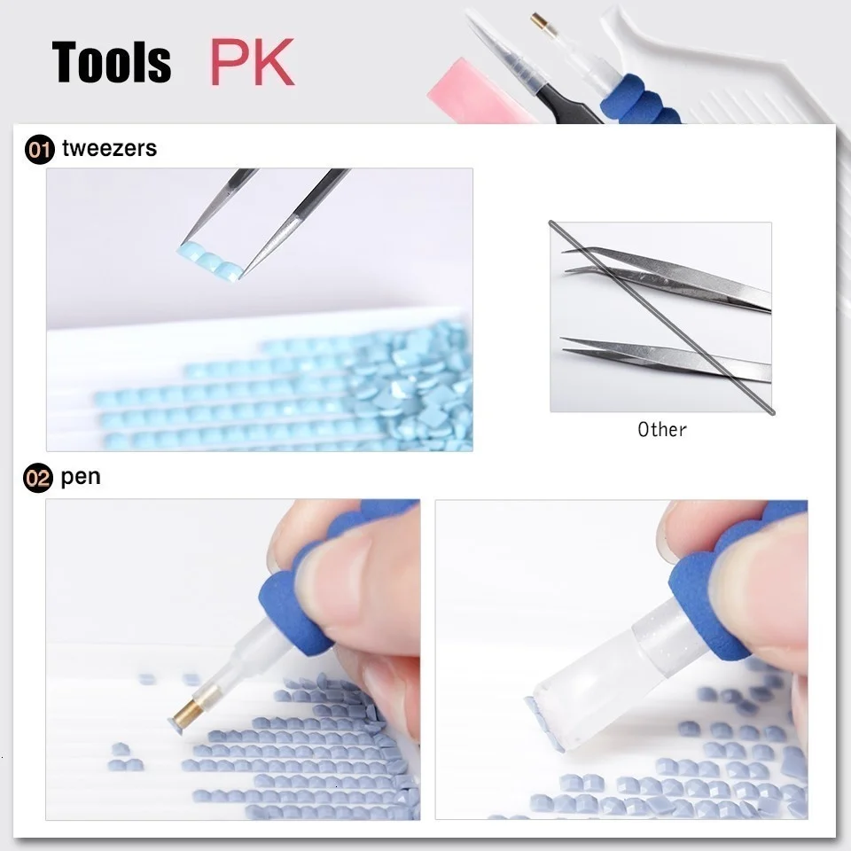 2.Fill the pen with glue,Put the diamonds into the plate.