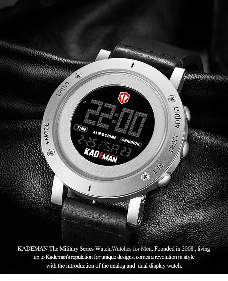 Описание 100% Новинка с биркой и высококачественной водонепроницаемостью (ручная Стирка) кожаный ремешок высокого качества характеристики Материал корпуса: сплав, пластик Диаметр циферблата: 50 мм Толщина корпуса: 15 мм Материал: кожаный ремешок длина ремешка: 270 мм (чехол в комплекте) ширина ремешка: 24 мм Вес часов: 98 г что входит в комплект 1 x часы Kademan 1 x гарантийный талон 1 x английский язык Инструкция