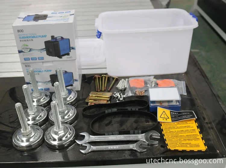 1/Руководство пользователя для использования и обслуживания. 2/один набор фрез маршрутизатора. 3 Бит коллекционируется. 4/гаечный ключ для изменения бит. 5/флэш-диск для установки системы управления. 6/провод передачи данных. 7/другие.