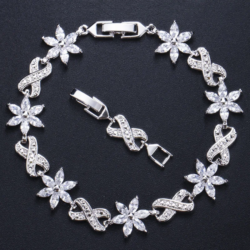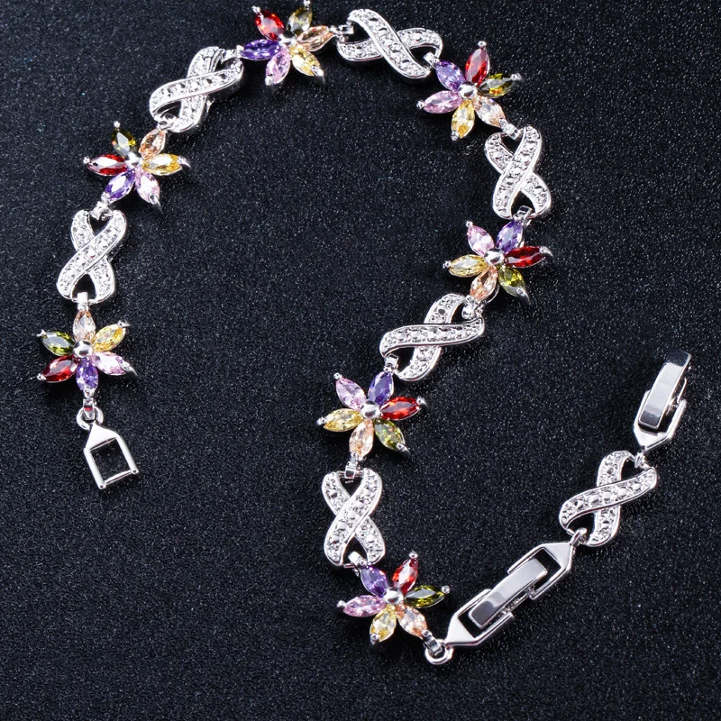 ThreeGraces Элегантный Многоцветный кубический цирконий установка Бесконечность цветок Charmower очаровательный дизайнерский браслет браслеты для женщин BR111