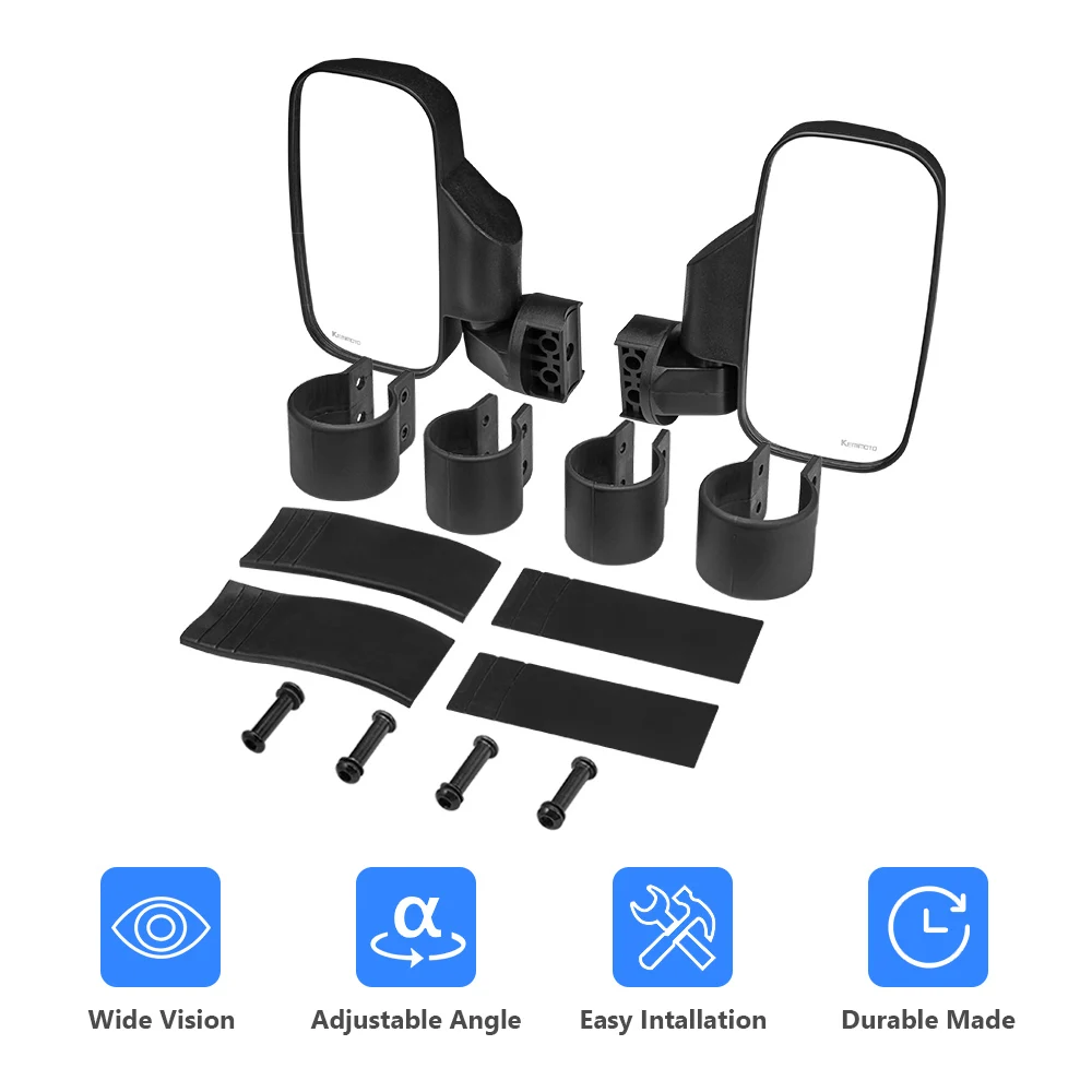【 2 комплекта монтажных зажимов-посылка включает в себя: 1,75 "и 2" крепежные зажимы. Подходит практически для всех UTV "s с 1,5" - 2 "Диаметр круглых труб ролл клетки, как, например, для Polaris RZR, для Yamaha, для Kawasaki, для Honda Аллигатор, И для Can-Am. Не подходит для некоторых рейнджеров Polaris. 【Более широкий обзор 】-размеры зеркала 4 "в ширину на 7" в высоту или 4 "в ширину на 10" в высоту, С гладким и стильным дизайном, который отлично смотрится на всех UTV и достаточно большой для максимального просмотра, даже на суровой местности и whoops. 【Прочный и высокоэффективный 】 прозрачный и не вибрирует вообще, ударопрочный АБС-пластик и нержавеющие болты, резиновые прокладки противоскользящие, И амортизирующие делают крепление достаточно плотным, чтобы не допустить ветра и ударов при езде по неровным дорогам. 【Легко регулировать 】 легко регулировать вверх и вниз или сбоку для желаемого угла обзора 【 Посылка List】- 2 * UTV боковые зеркала (для водителя и пассажира), 2 комплекта из монтажные хомуты (1,75 "и 2"), 4 * резиновых прокладок, и винты. Материал: Ударопрочный пластик и нержавеющие болты Размер зеркала: Вариант 1: 4 дюйма в ширину на 7 дюймов в высоту Вариант 2: 4 дюйма в ширину на 10 дюймов в высоту
