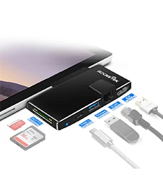 "Rocketek устройство для чтения карт памяти USB 3,0 концентратор комбинированный адаптер, Расширьте для Microsoft Surface в 4K HDMI, Gigabit Ethernet, SD/Micro SD слоты для карт и 2 порта USB 3,0. Легко ваша жизнь без задержек.