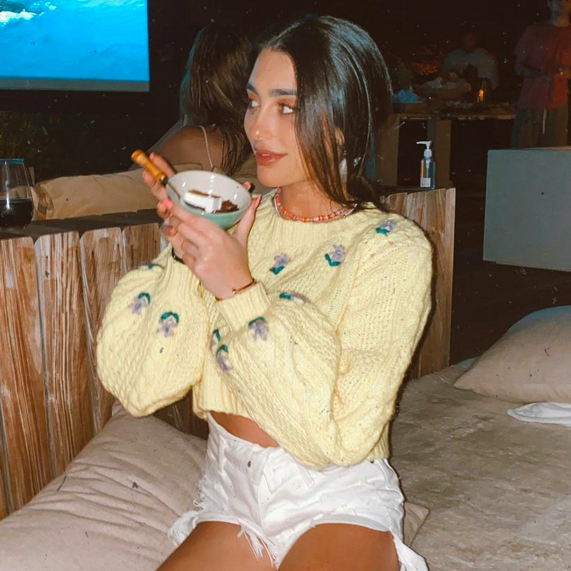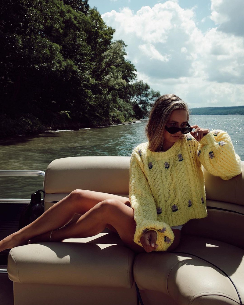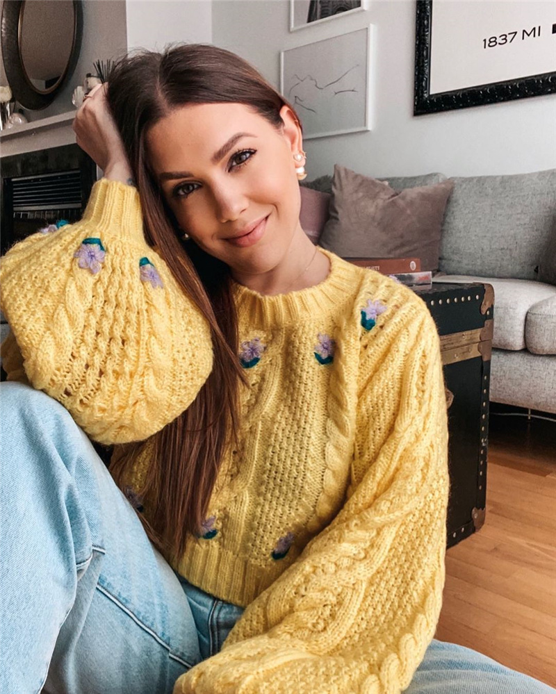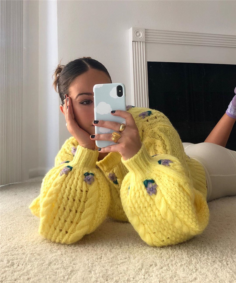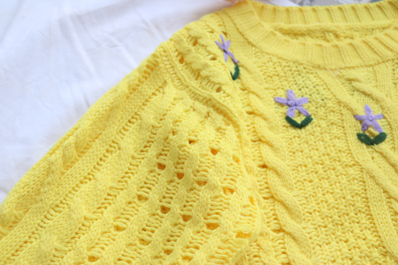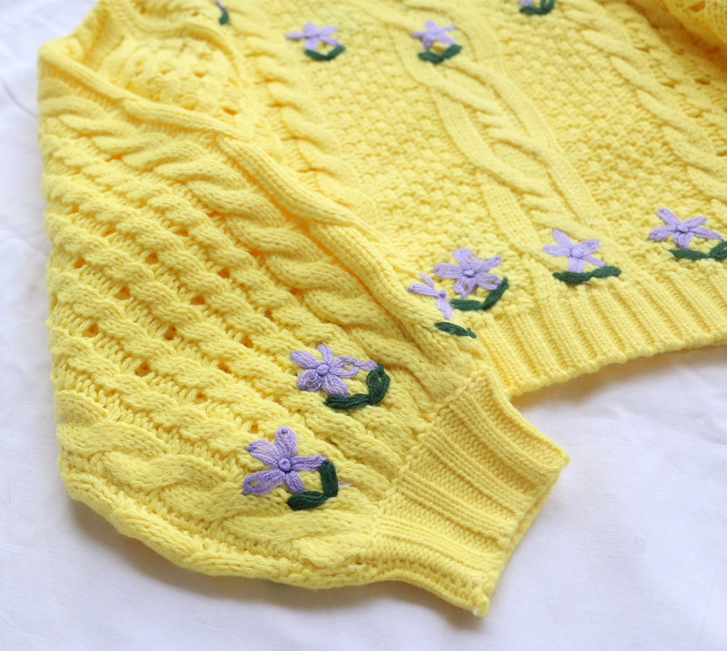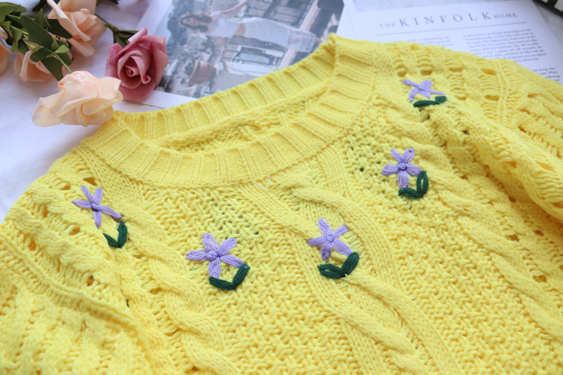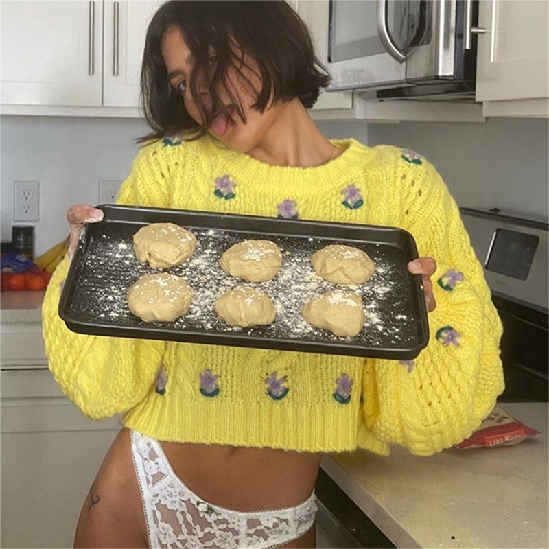 Женские свитера с круглым вырезом, с длинным рукавом-фонариком, с цветочным узором, вязаный укороченный топ