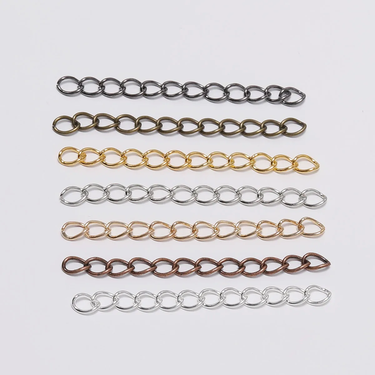 100 шт./лот, золото/родий, удлиняющая цепь, удлиняющая цепь, соединитель 50 мм, 70 мм, для изготовления ювелирных изделий