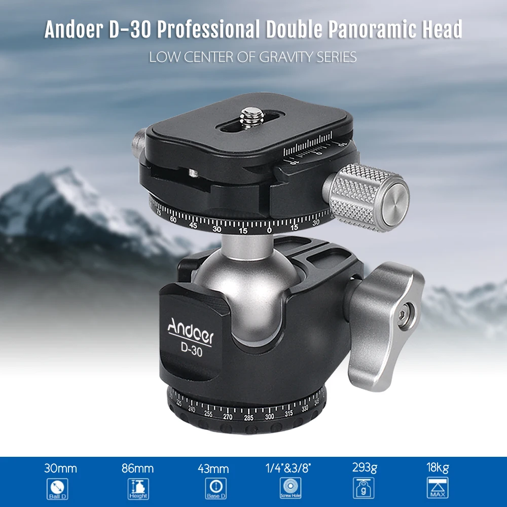 Andoer D-30 профессиональная двойная панорамная головка с ЧПУ шаровая Головка для штатива монопод DSLR камеры ILDC Максимальная нагрузка 18 кг