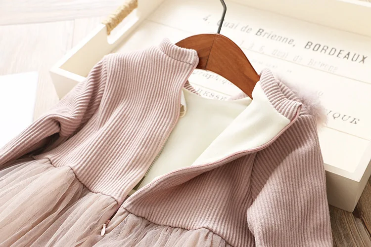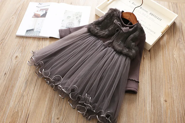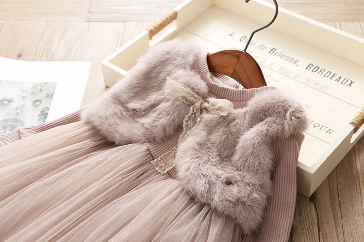spring baby girl dress long sleeve fur vest baby girl clothes winter boutiques gown dress kids dresses for girl's clothing | ||||