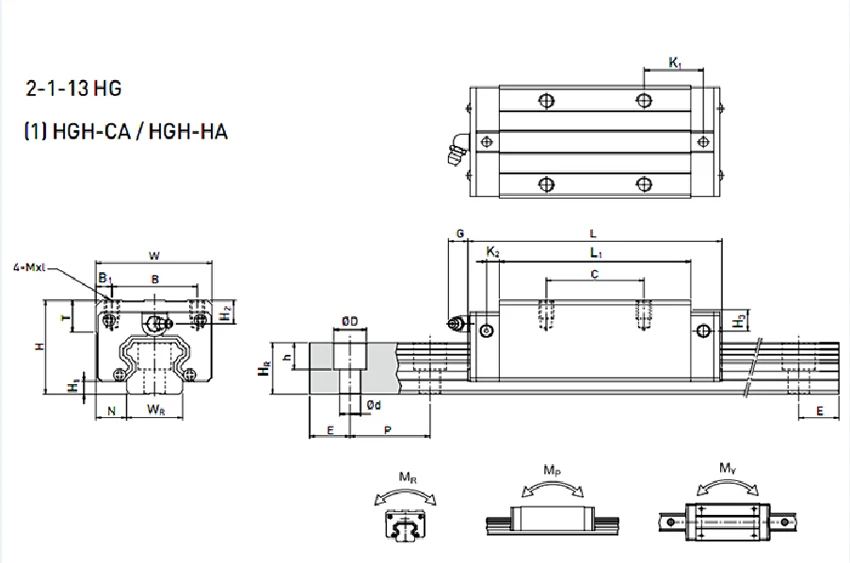 Комплектация: 4 шт. * HGH25CA слайдер (квадрат) + 2 шт. * HGR25R * 3000 мм рельс +