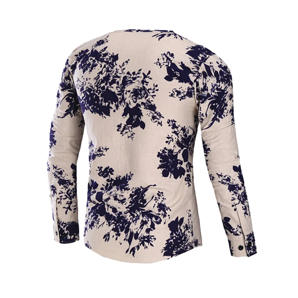 Модная мужская приталенная рубашка с длинными рукавами на пуговицах с цветочным принтом; Рубашка; Блузка; Топ